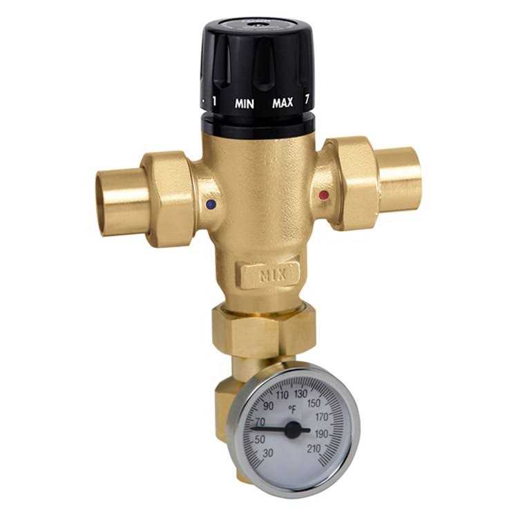 Caleffi 521619A 3-Way Mixing Valve W Adaptor and Gauge Low-Lead