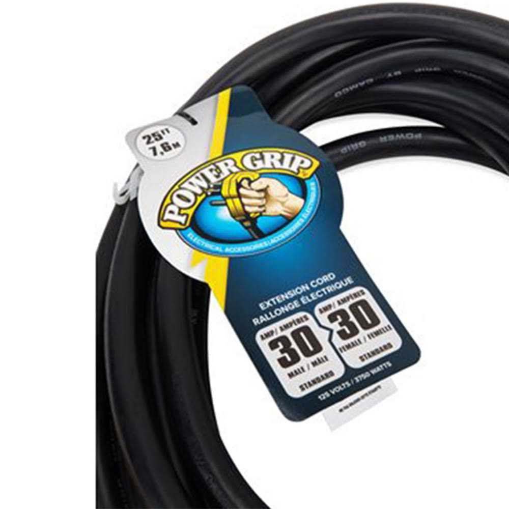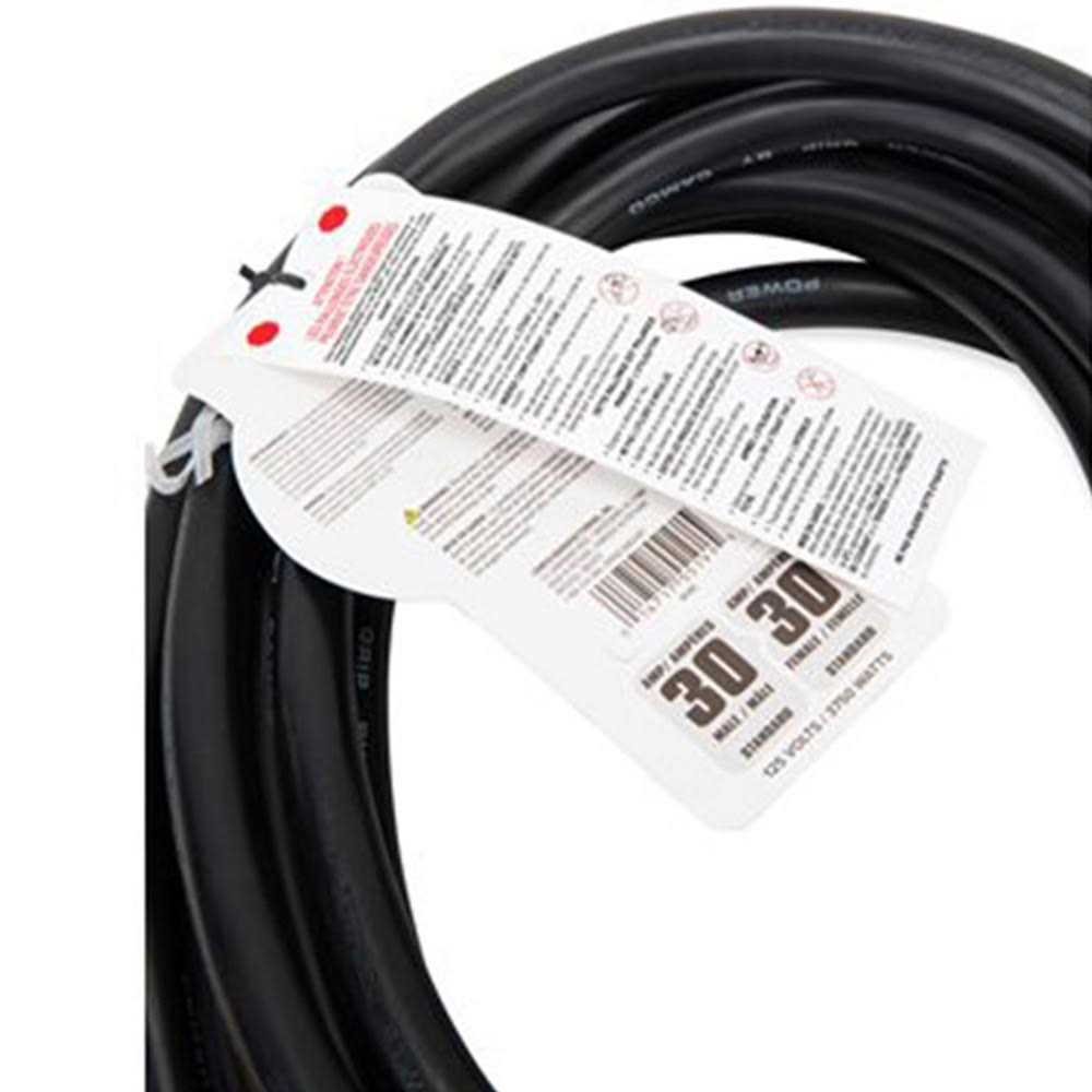 Designed for greater convenience and ease of use. It is 10 gauge grounded STW with pull handles on both ends. Handles make unplugging easier. 30 A. 125V/3750W. Rated for outdoor use.