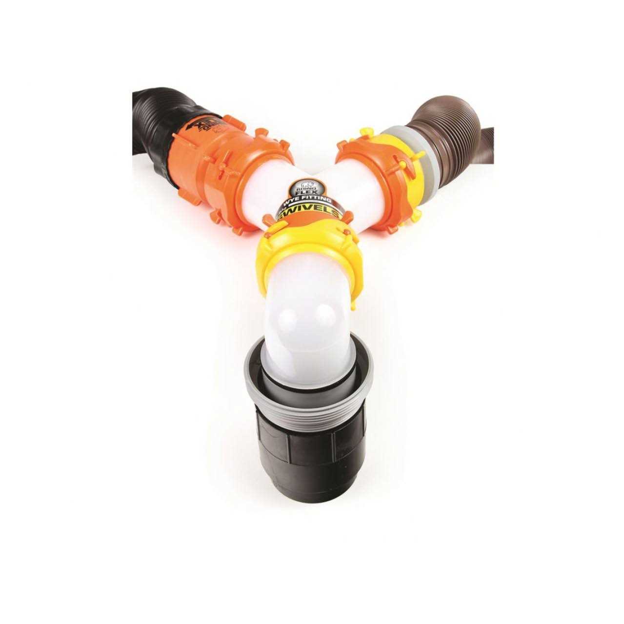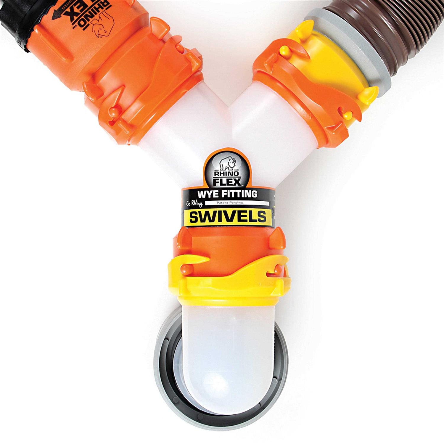 The Camco RhinoFLEX Wye Fitting is an innovative solution designed for motorhome owners with dual holding tank valves. This unique accessory enables the connection of two sewer hoses with lug fittings to a single dump station, providing convenience and efficiency. Boasting a patent-pending design, the RhinoFLEX Wye ensures an odor-tight connection through built-in gaskets, offering peace of mind during the dumping process. With all three ends featuring 360-degree swivel capabilities, this product facilitates ease of use. Additionally, two ends come equipped with bayonet fittings, while the third features a lug fitting, catering perfectly to the needs of motorhomes with two separate holding tank valves.