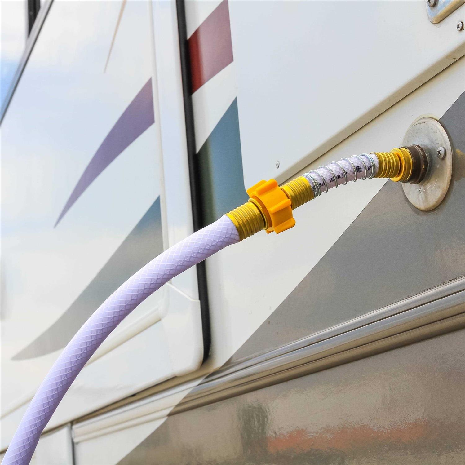 The Camco 25′ Fresh Water Hose is a heavy duty hose that is reinforced to give you maximum kink resistance. This reinforced fresh water hose is also drinking water safe for your convenience. This heavy duty Camco water hose is made from FDA approved materials and when it is hooked with a Y-valve to the main faucet then it becomes more useful. Using this fresh water hose, you can easily add water to your fresh water tank manually. The length of the Fresh Water Hose is 25 feet and weighs 3.4 pounds. Another positive feature of this heavy duty water hose is that it is neutral; this means that water poured through this hose has neither a hose-like taste nor a rubber-like taste. This fiber-reinforced hose also protects you from any kind of bursting.