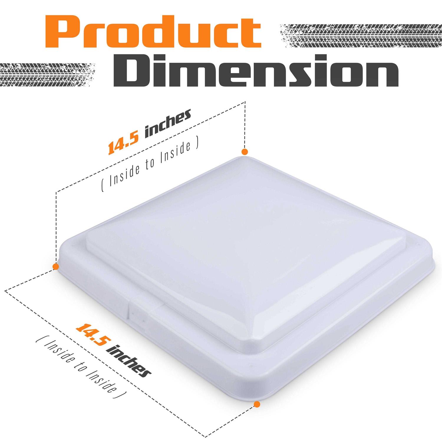 The Camp’N Replacement RV Roof Vent Cover is compatable with most popular roof vents. Compatable with Ventline roof vents prior to 2008 and Elixir roof vents starting 1994. Please reference the images in the listing to make sure your vent is compatable with this replacement. | Each Camp’N RV vent cover replacement measures 14″ x 14″ | Our Highly Durable rv ceiling vent covers are manufactured with impact resistant plastics for longlife.