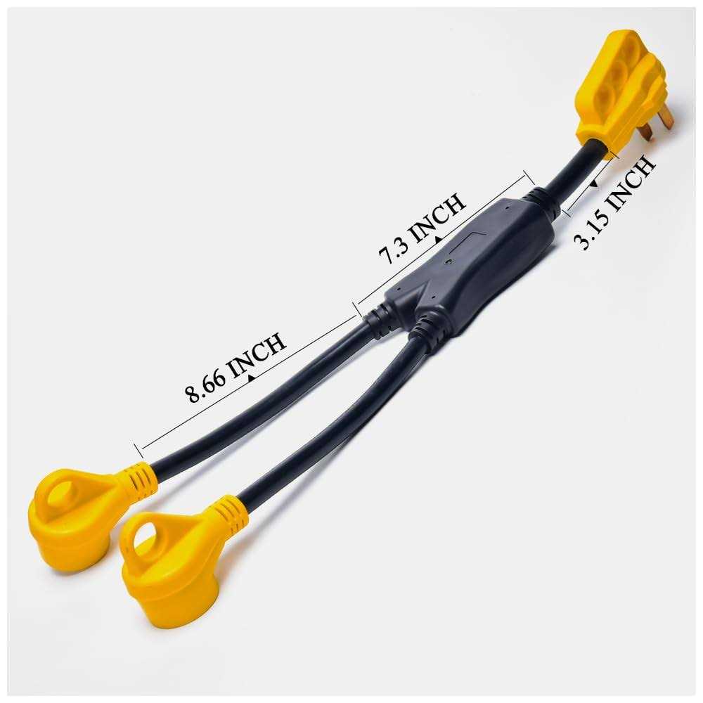 - 50A Male Plug to (2) 30A Female Connector Rv Power Adapter.