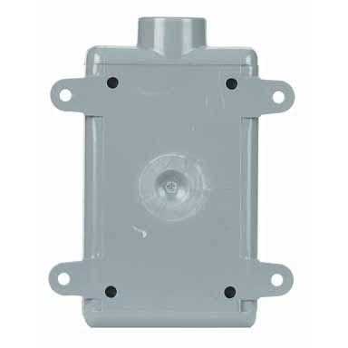 - Surface mounted box with 1 entrance hub and no outlet hub