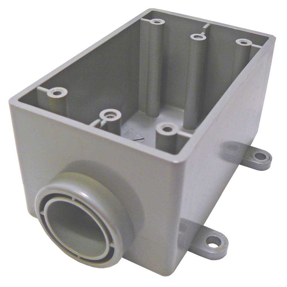 The Cantex Type FSE Single Gang Box is used for a conduit termination box and for single gang electrical devices. Uses single gang device covers. Single gang, surface mounted electrical box which has only one conduit entrance hub with no outlet hub.