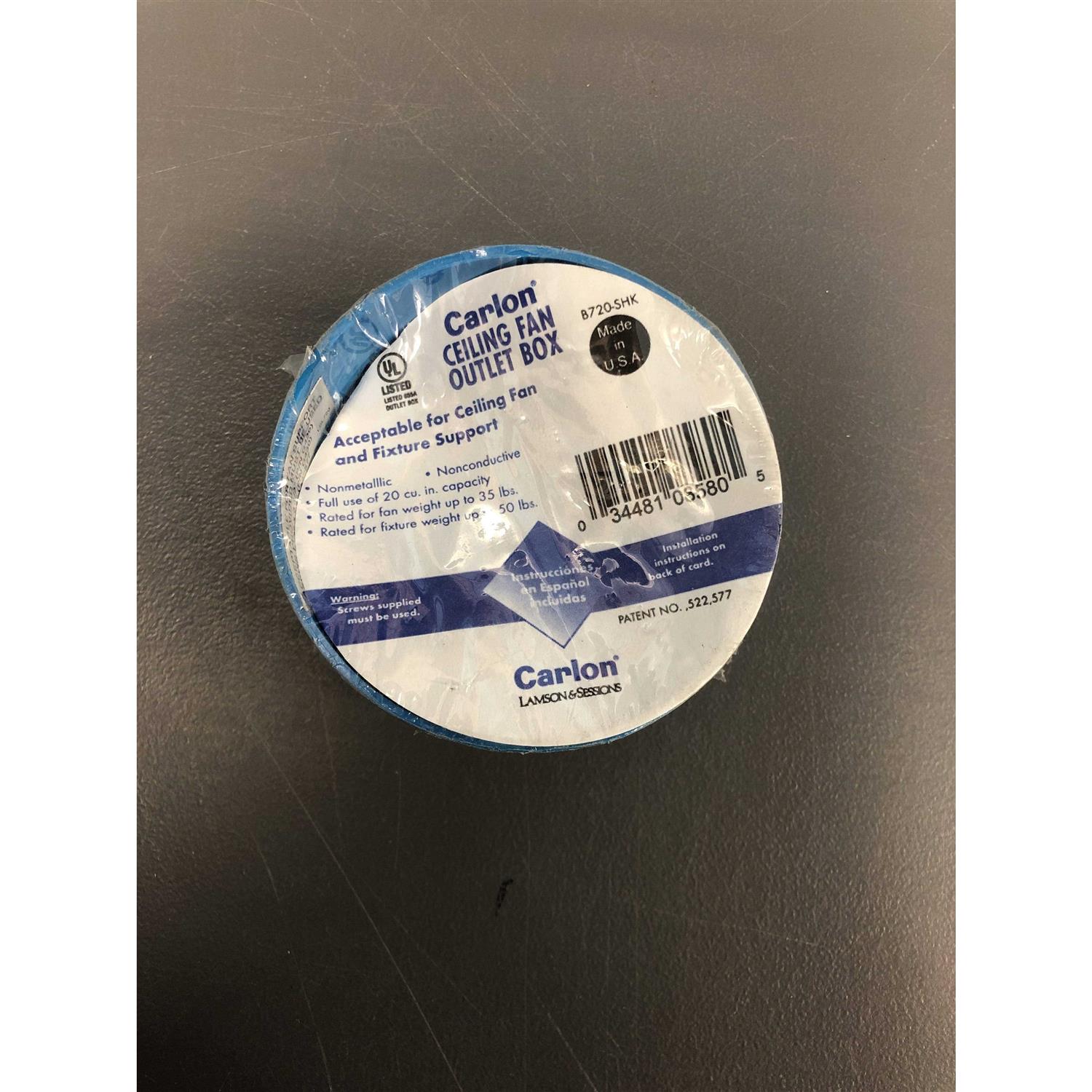 Non-conductive high impact lightweight PVC. Full 20 cubic inch capacity. 6 integral clamps. 4″ diameter x 2-1/4″ depth. Used for new work or renovations. Rated for fans up to 35 pounds and fixture up to 50 pounds. Mounts fan to a cross member secured between ceiling joist. Mounting screws included. UL Listed.
