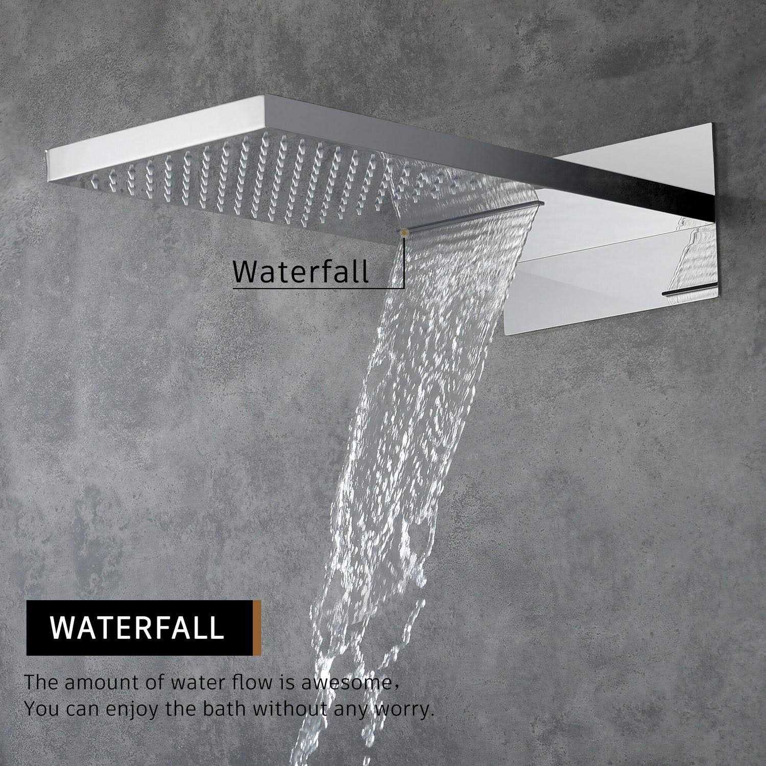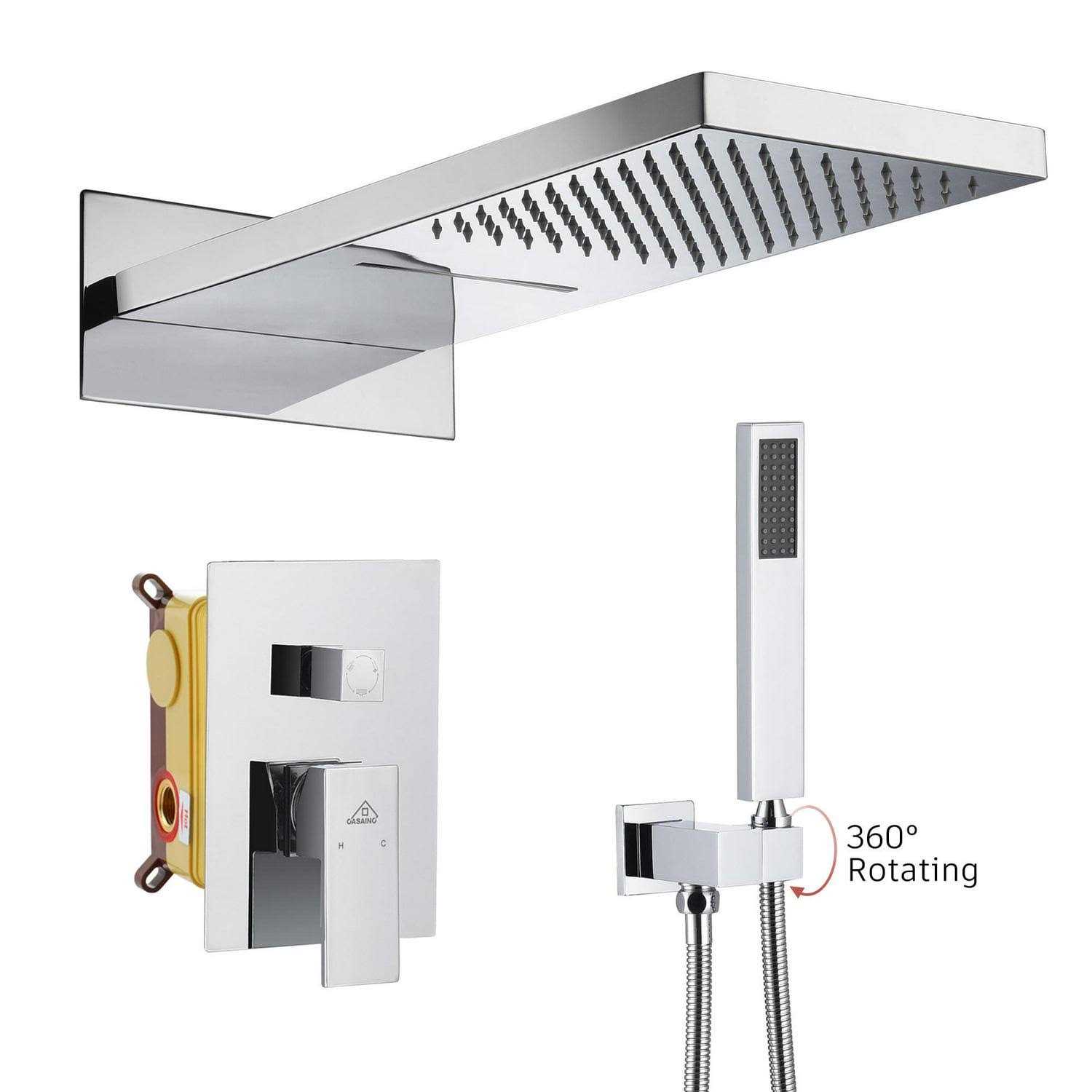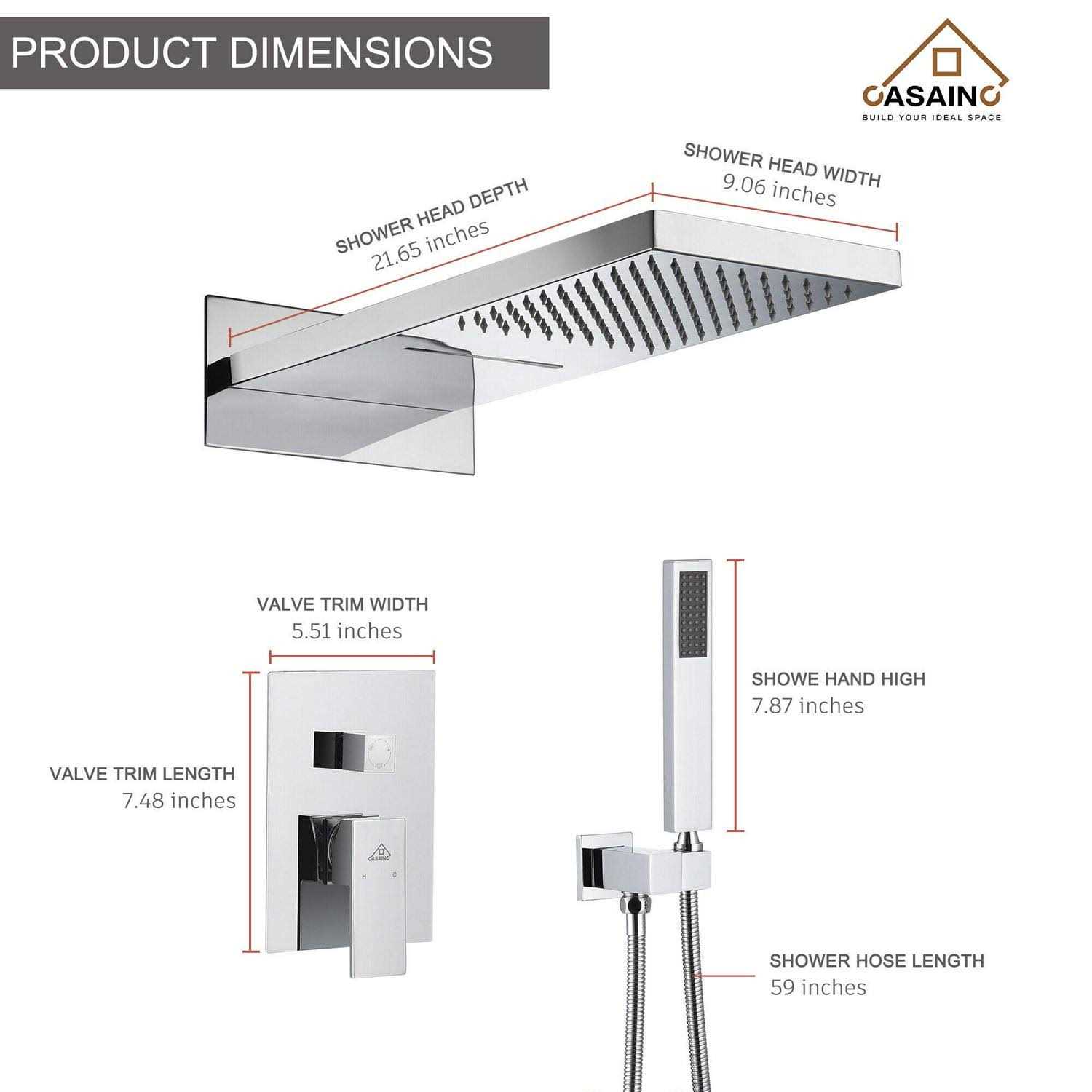 CASAINC Chrome Dual Head Waterfall Built-In Shower System with 2-Way Diverter Stainless Steel | M6630-A-22-CP