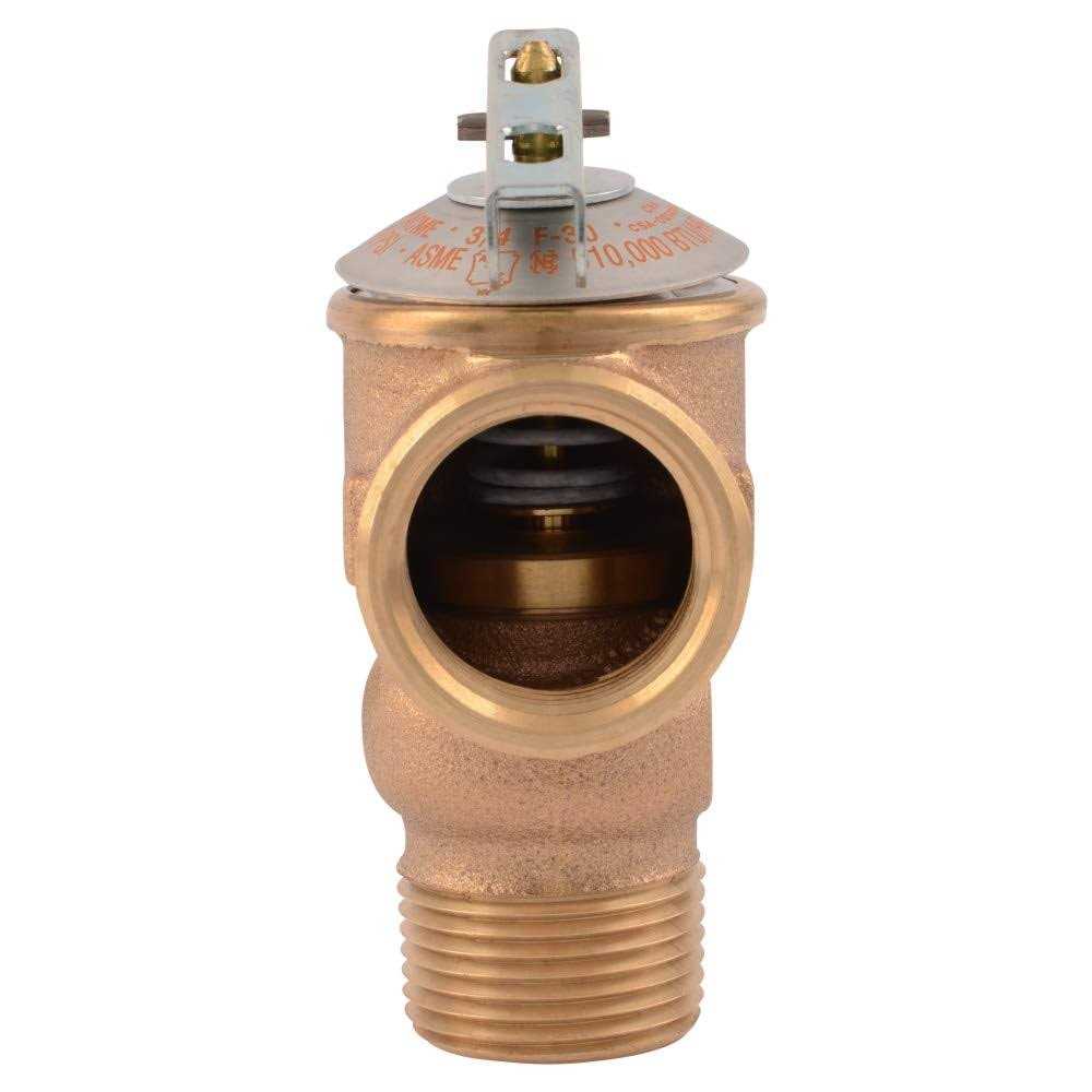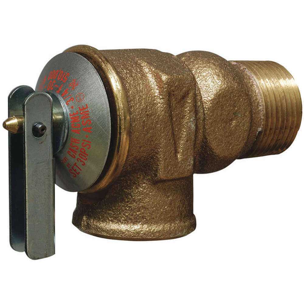 Relief Valves by Cash Acme. Details: Cash Acme F-30 Temperature and Safety Relief Valves are designed for use on hot water service only. The F-30 Series relief valves feature a compact design and include a lever that is set at 30 PSI. These valves are made with a heavy-duty and lead-free brass body that provides long-lasting strength and durability. The F-30 Temperature and Pressure Relief Valve is certified to be lead-free in accordance with NSF 337; compliant with ASSE standard 1003 and CSA standard B356 Female connections, bronze body, and silicone seat. Designed for maximum intermittent water pressure of 125 psi.