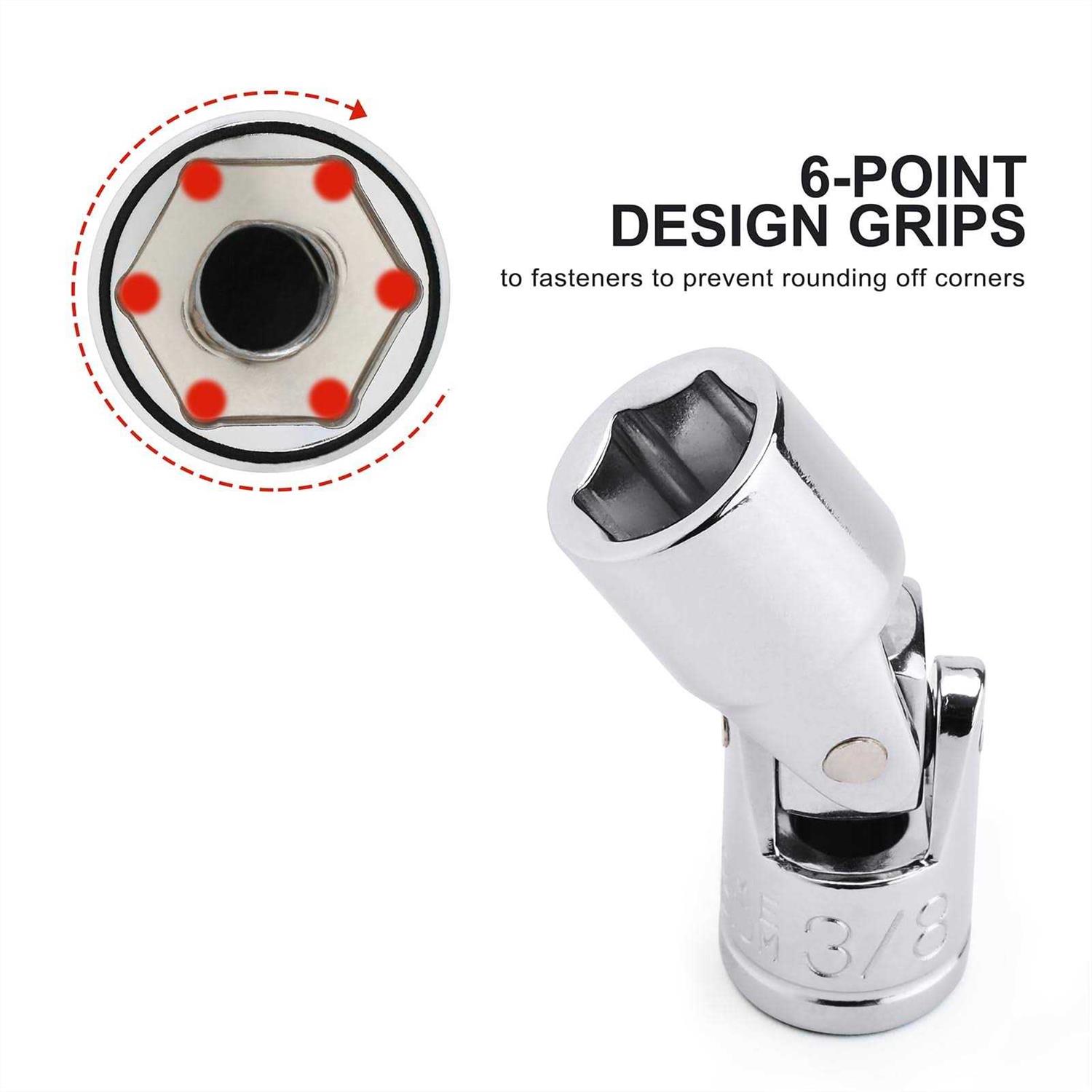 CASOMAN 7pcs 1/4″ Drive Universal Flex Socket Set, SAE, 3/16″ to 9/16″, 6-Point, Cr-v, Swivel Head, 360 Degree Access