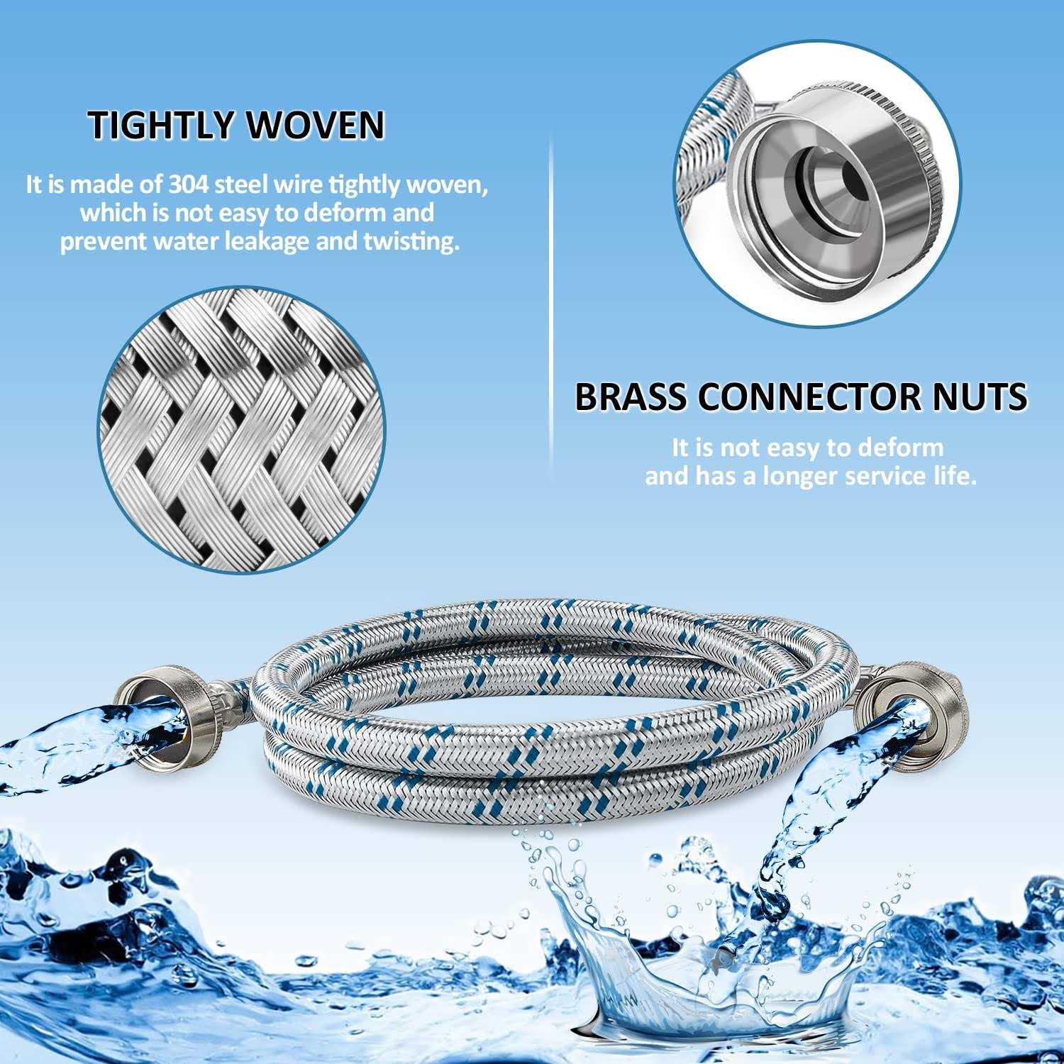 Cenipar Washing Machine Hoses 4feet with 90 Degree Elbow Premium Stainless Steel Burst Proof Red and Blue Striped Water