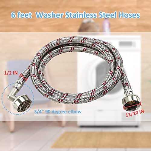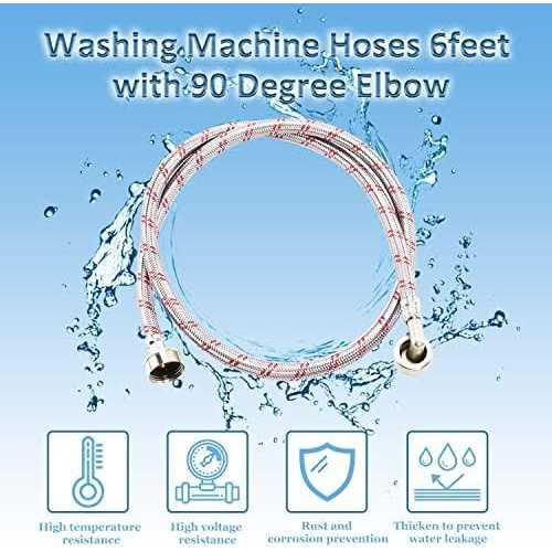 Cenipar Washing Machine HOSES 6feet Premium Stainless Steel with 90 Degree Elbow, Burst Proof (cost-effective 2 Pack) Red and Blue Striped Water
