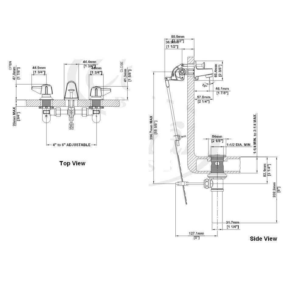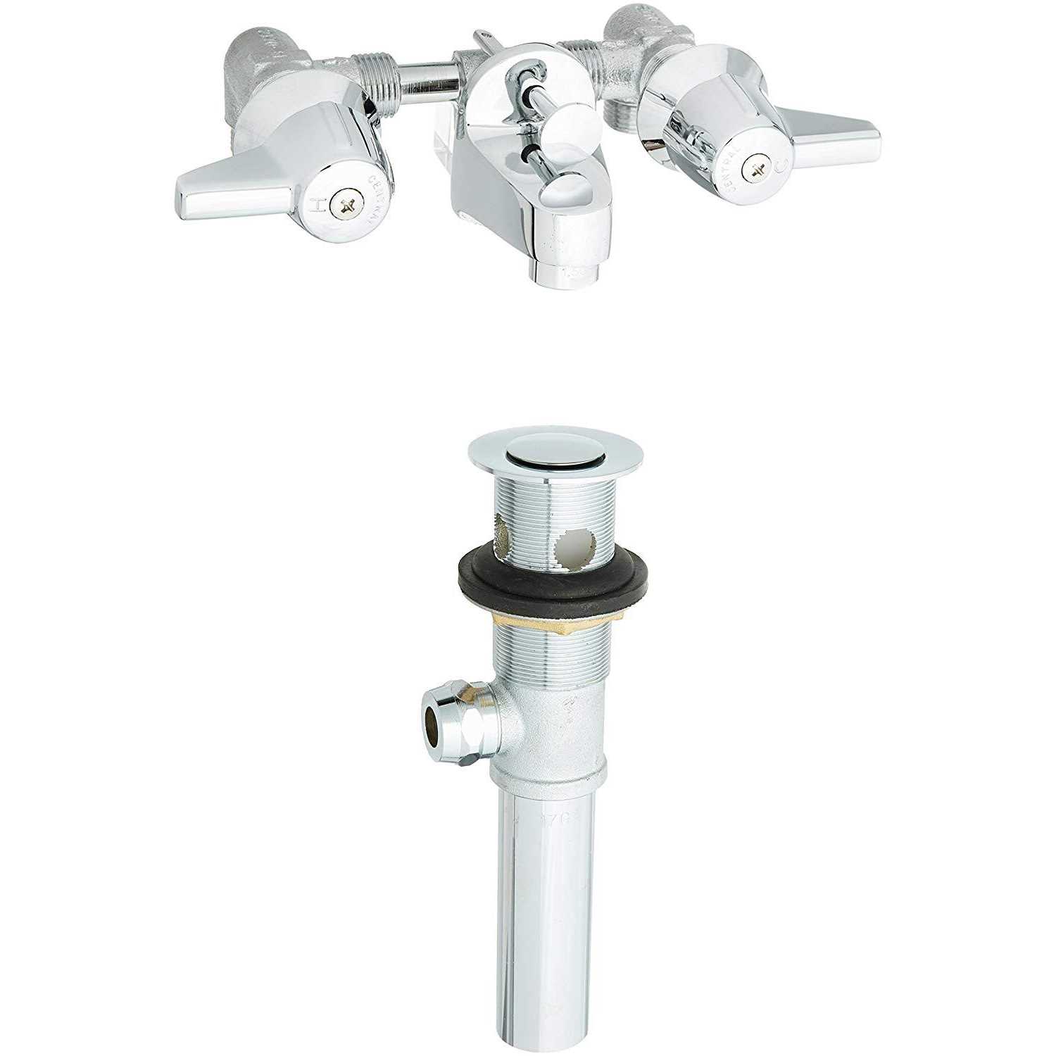 Canopy handles Replaceable seats 3-Hole 4″ to 6″ installation Brass pop-up drain assembly CENTRAL BRASS 4 in. 2-Handle Low-Arc Wall-Mount Bathroom Faucet in Chrome adjusts between 4 in. and 6 in. for custom placement. This durable chrome-finished faucet features tough cast brass construction for long-time use. It includes 2 easy-to-use lever handles and a replaceable pop-up drain.