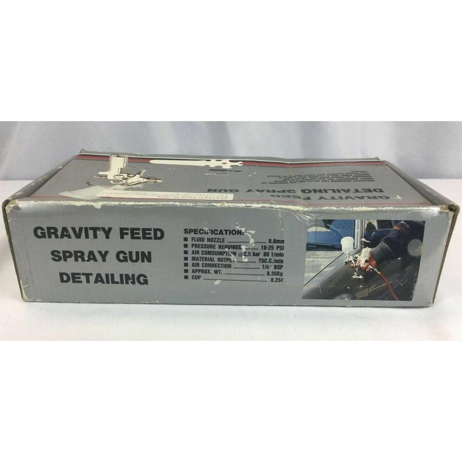 - Working pressure of 20 to 50 PSI 3 cubic feet per minute (cfm) @ 50 PSI HVLP prevents overspray 0.6 mm nozzle 4oz Cup Capacity 1/4″ Air Inlet.