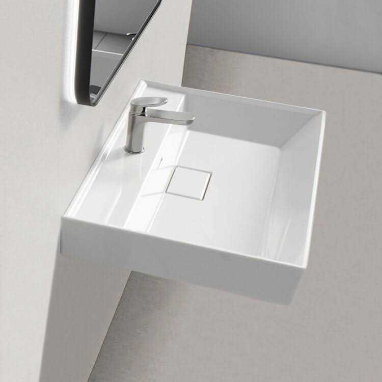 ADA Wall Mount Bathroom Sink, Modern, Square, 19″, Sharp CeraStyle 037000-U by Nameeks