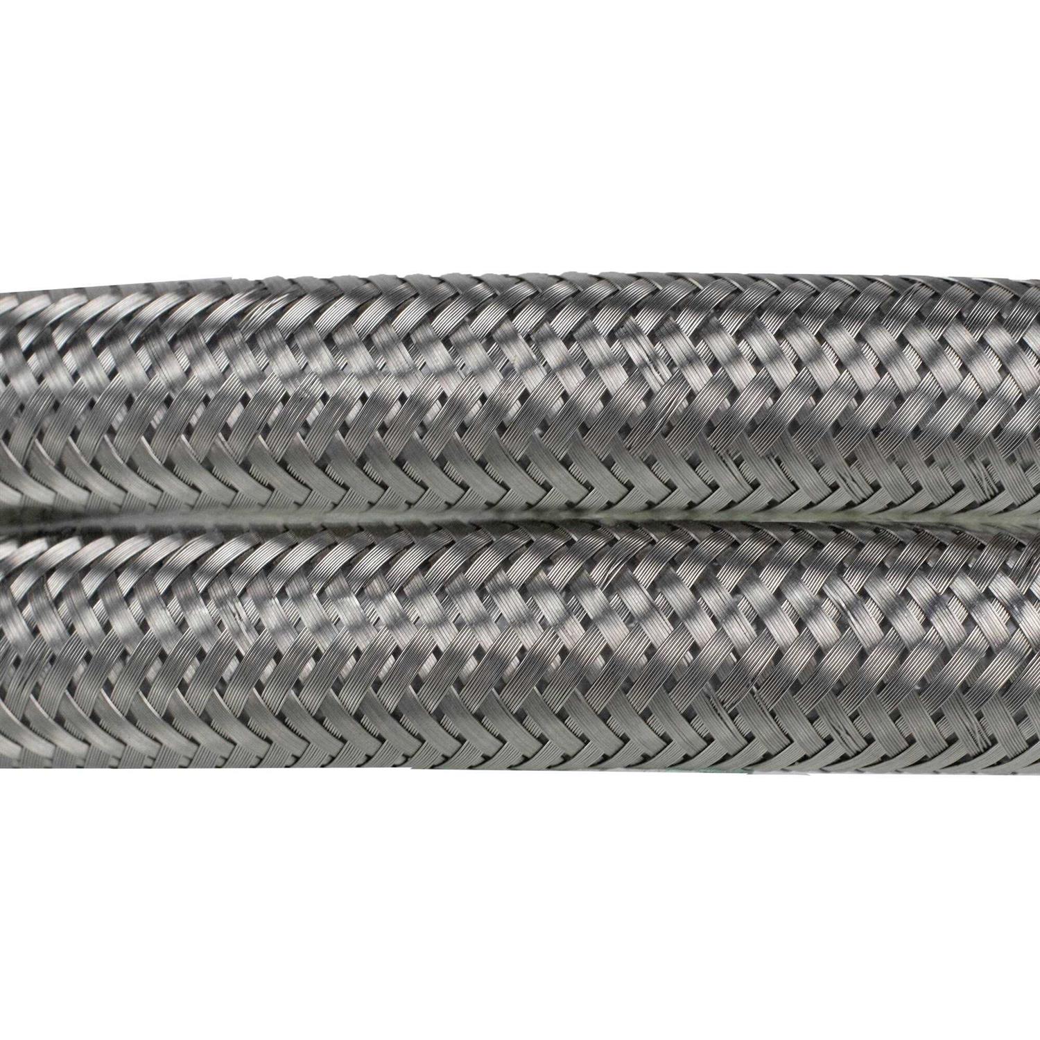 - Braided stainless steel resists punctures, crimping & kinking