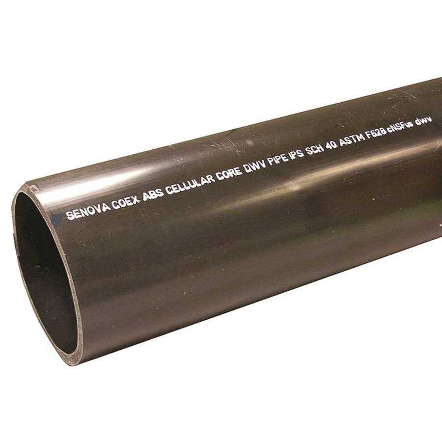 ABS Foam Core pipe is for drain, waste and vent purposes only. It is used in gravity fed waste elimination systems. It is for non-pressure systems where temperatures will not exceed 140 deg F. ABS Foam Core is lightweight and easy to install. ABS pipe has cellular core, requires no special tools for cutting. ABS Foam Core pipe is installed by solvent cementing (no primer required).
