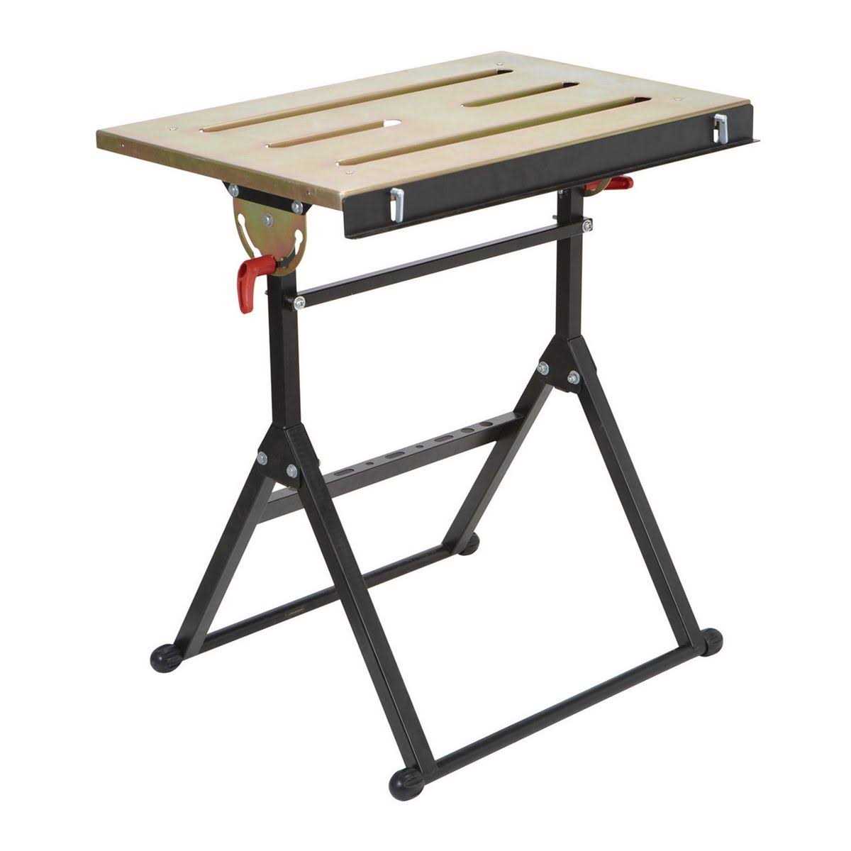 The steel surface of this adjustable welding table gives you a steady, flameproof surface for welding parts and components. Designed for conductivity, connect your welding clamp directly to the welding table safely out of the when you work on smaller pieces. Adjustable angle and fence give you a variety of welding options. Maximum Working load (lbs.) 350 lb. Product Height 32-7/8 in. Product Length 30 in. Product Weight 36.1 lb. Product Width 19-7/8 in.