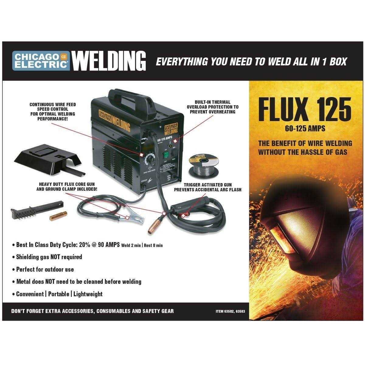 Get the benefit of wire welding without the hassle of gas. The Flux 125 Welder is a versatile flux core arc welder (FCAW) specifically designed to use self-shielding flux-cored welding wire. This eliminates the need for gas and regulators that normal MIG welders require. Set-up is easy for gasless flux-cored welding. With variable speed wire control and thermal overload protection, this flux wire welder provides dependable performance in a compact, lightweight package.