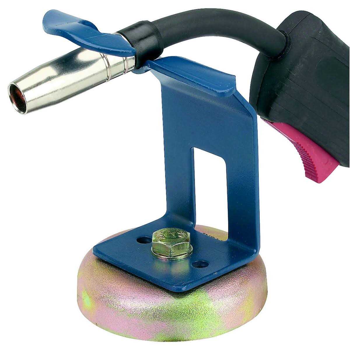 This magnetic MIG torch stand keeps your MIG torch safe from being damaged when you’re not using it. The torch stand’s powerful 2-3/4 in. magnet clamps to your workbench or the side of your welder and can work either vertically or horizontally. The torch stand has a durable enamel finish with a zinc coated base for added durability.