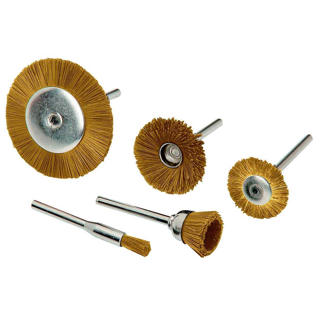 This set of brushes and wheels contains everything you need to tackle surface cleaning jobs. The set includes a mini wheel, 1 in. wheel and 1-1/2 in. wheel for larger surfaces as well as a cup brush and end brush for delicate work. This is a great surface cleaning set for hobbyists, metal workers and do-it-yourselfers to get a smooth, clean surfaces on their work pieces.