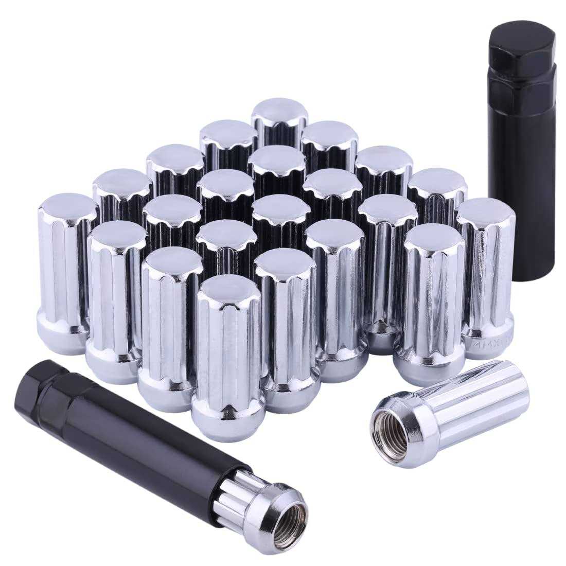chnewAuto M14x1.5 Lug Nuts 14×1.5 Spline Lug Nuts M14 x 1.5 Chrome Lug Nuts 2 Tall Set of 24 pcs 2 Socket Keys 14mmx1.5 Lug Nuts Acorn Aft