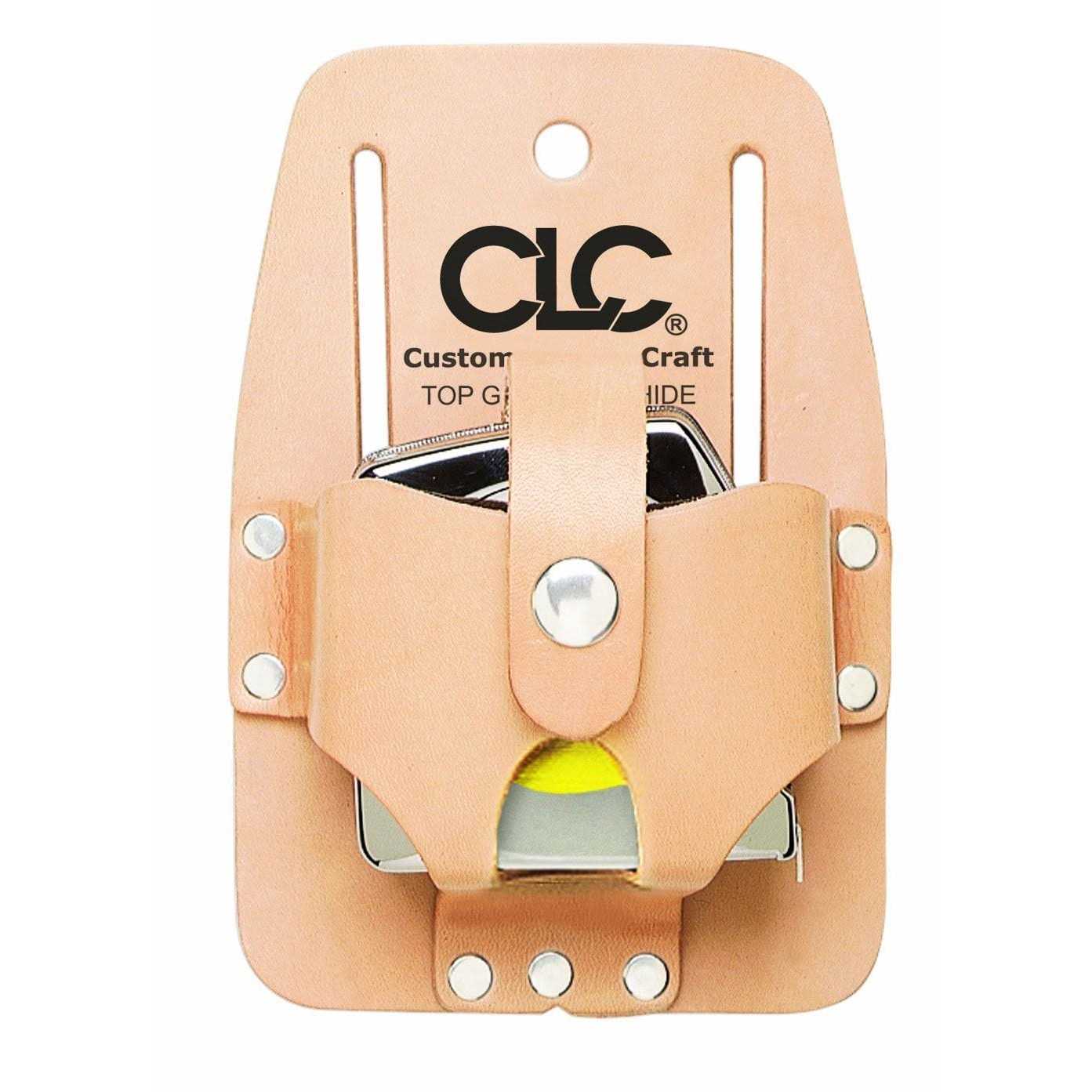 Top grain leather Molded leather retains shape Safety snap included Easy out keel Fits belts up to two and three quarter inch wide Some tools deserve special treatment. CLC 464 tape measure holder keeps it close at hand.