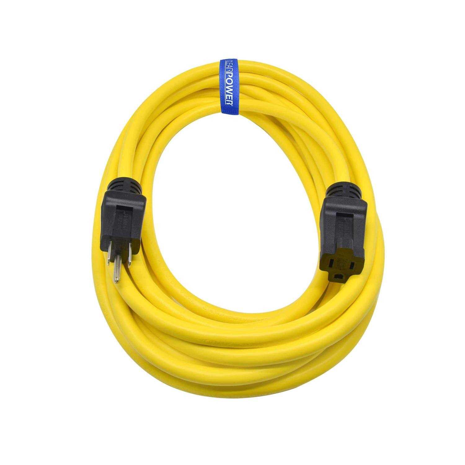 Clear Power 25 ft Heavy Duty Outdoor Extension Cord 12/3 SJTW, Water & Weather Resistant, Flame Retardant, Yellow, 3 Prong Grounded Plug, Cp10144
