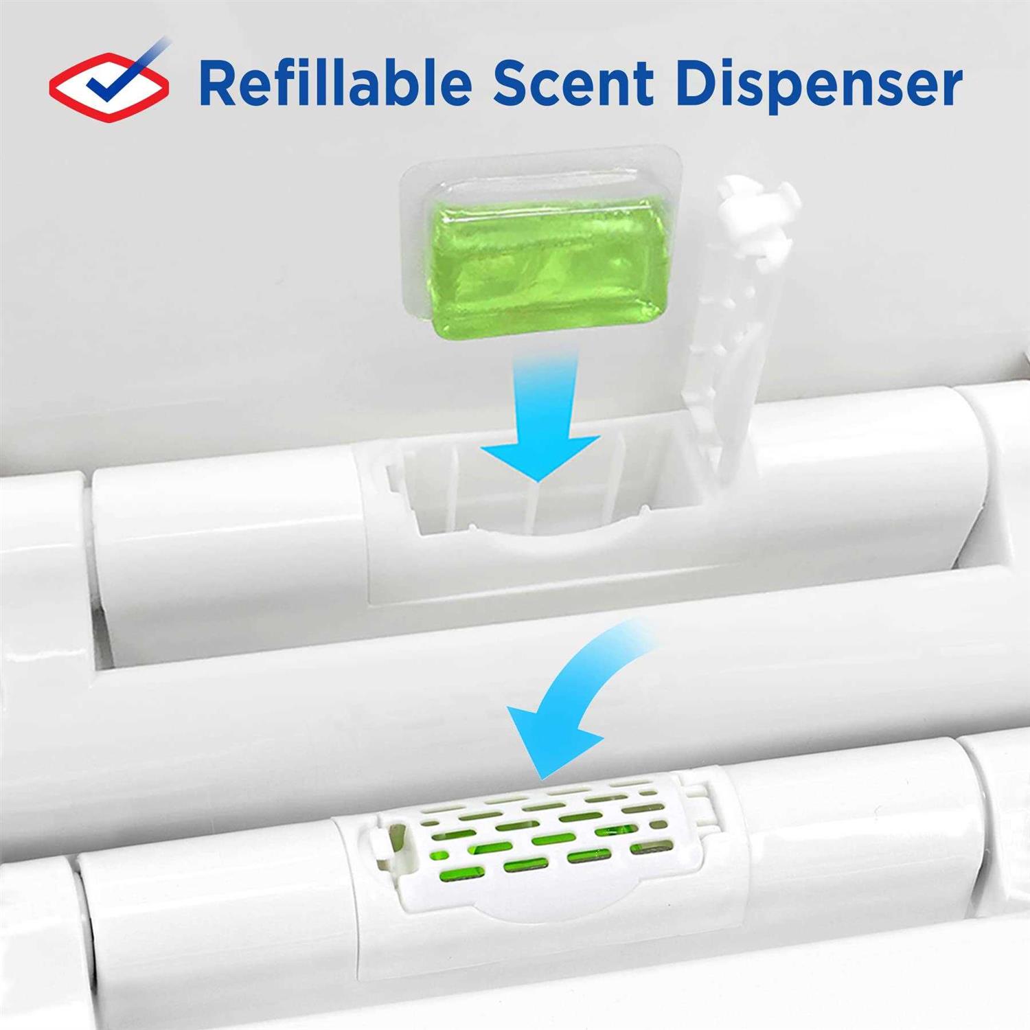This timeless design will suit any bathroom decor while offering you the highest cleanliness possible! Each seat is treated with antimicrobial protection that inhibits stain & odor causing bacteria in the Lid, Toilet Seat Ring & Hinges. The antimicrobial material encapsulated in each toilet seat component provides continuous protection that resists washing away or wearing off over time for long-lasting durability. The seat includes a Stay Fresh Scent Pod with the scent of Green Meadows that helps with odor control. The Stay Fresh Scent Pod is installed in the housing on the hinge of the toilet seat. All hardware is included for easy installation. Sturdy, Easy-Off hinges offer a wiggle-free design when in use by securely attaching to your toilet and an easy to remove feature when it is time to clean! Simply flip up the mounting covers on the hinges and pull the toilet seat off to release and remove the seat. When finished cleaning, replace the seat and lock the mounting covers back into place. Protective bumpers on the underside of each seat help prevent scratches and scrapes on the surface of porcelain toilet bowls. To clean, simply wipe down with a soft, damp cloth using mild detergent. Please be sure to read the description thoroughly to make sure that this is the item you want before making a purchasing decision. Please be aware that slight variations in color may be due to differences in lighting and computer monitor resolutions. Boxes or APOs. An adult signature will be required. Please be sure to have available help on hand to assist you with moving the item to the desired location in or outside of your home. You can request a refund if you are dissatisfied for any reason with your product. Only factory defects are accepted as a reason for a return. The item and package should be in original and perfect condition.