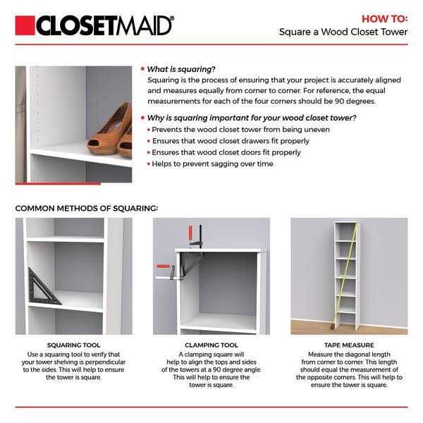 ClosetMaid Style+ is a stylish, yet affordable organization solution. The clean, versatile design creates shelving storage in closets and throughout the home. Personalize towers and base units by adding doors. Doors create hidden storage while providing an upgraded look.