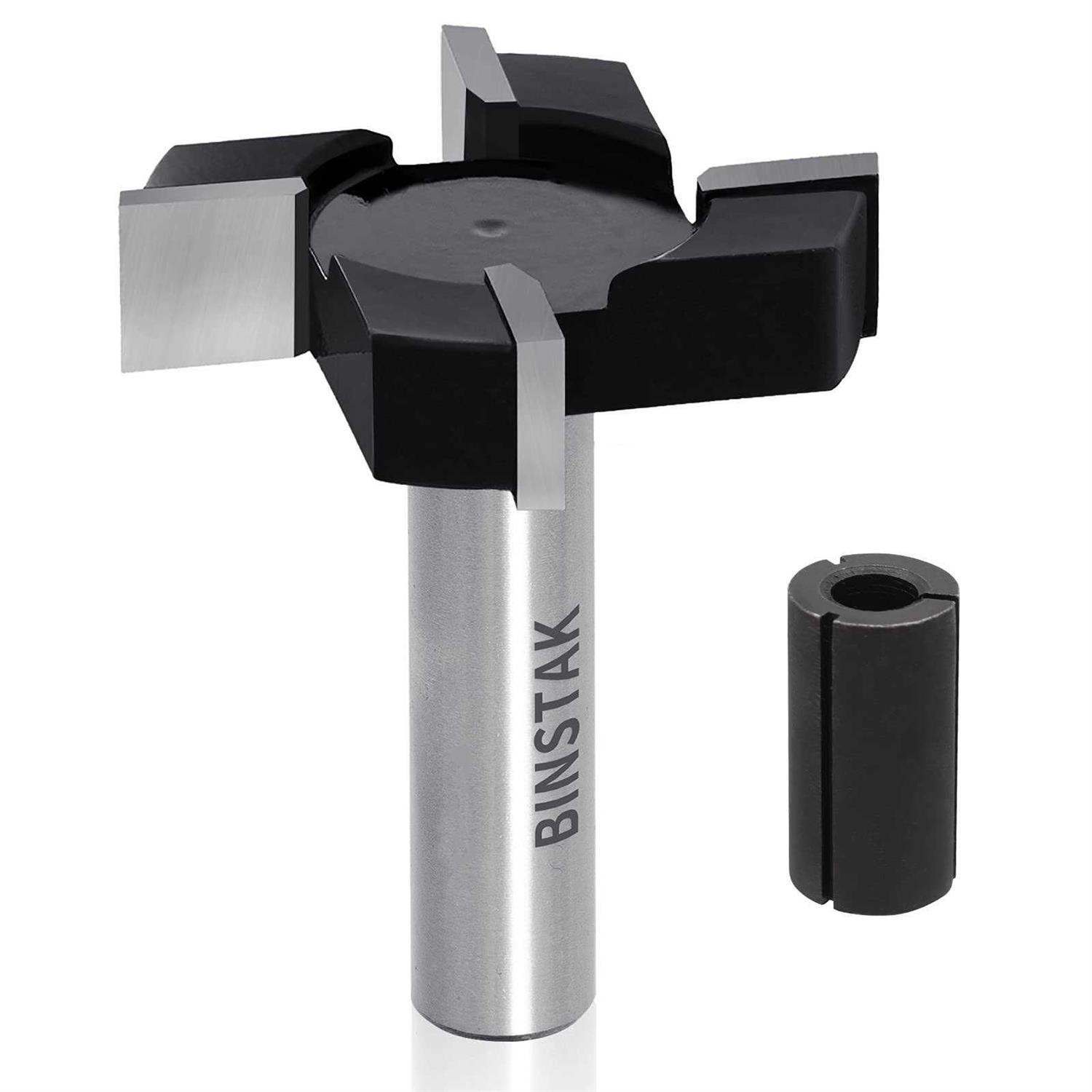 4 WINGS WOOD CNC ROUTER BIT: Shank: 1/2″; Cut Diameter: 2″; Cut Length: 1/2″ HIGH QUALITY CNC ROUTER BIT: The sharp carbide tipped bit, solid hardened steel bodies with anti-kickback design. Build up with heat resistant Teflon coating. This CNC router bit is specifically designed and manufactured for the high quality demanded by woodworking industrial applications, BINSTAK router bit can withstand some heavy duty use and the test of time. VERSATILE WOODWORKING TOOl: This professional bottom cleaning router bit is not only perfect for wood slab flattening, resurface or plane the top surface of the spoilboard, but also for trimming and slotting/grooving. Great replacement bit tool for woodworking carpenter! USE RANGE: Suitable for woods, mdf, laminate, particle board, plywood compact panel, acrylic and etc. Avoid cutting metal and non-wood materials. Use on CNC and other automatic routers as well as hand-held and table-mounted portable routers. Such as woodworking engraving machine, trimming machine, etc. GIFT: Router Collet Reduction Sleeve Tool Bit. For turning Electrical and mechanical wood carving milling chuck connector from 1/2″ to 1/4″. Inner diameter: 6.35 MM. Outside diameter: 12.7 MM