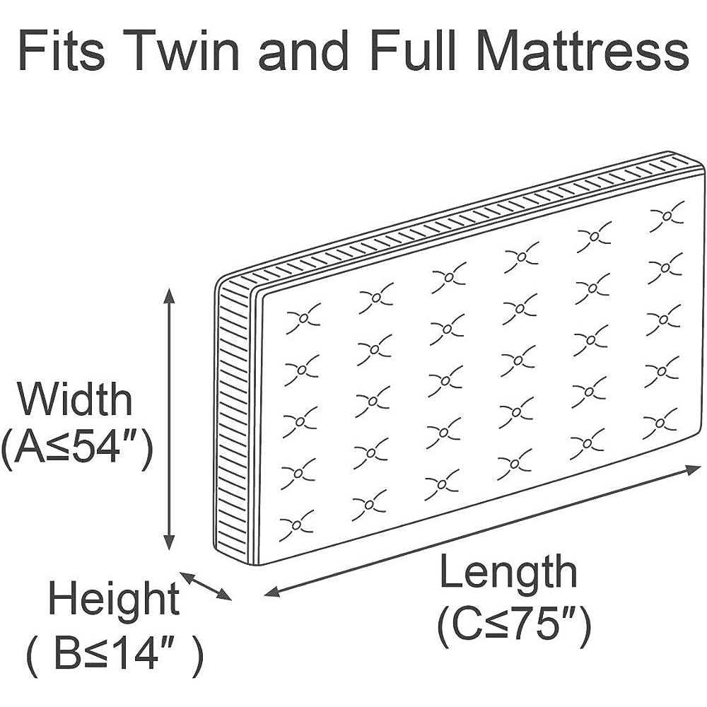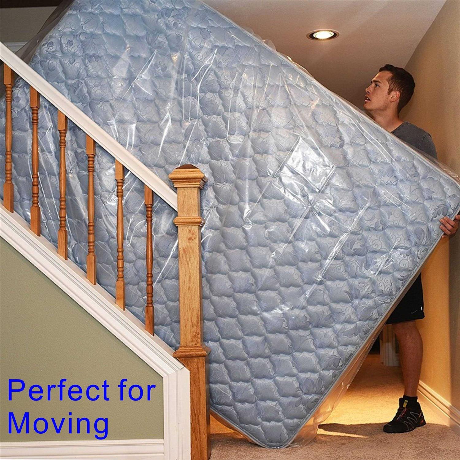Size: **Twin/Full** Size: Fits Twin and Full Size Mattress with height up to 12 inches(≤12 inches). Economical:Includes 2 bags (3D shaped bag) made of 2 Mil polyethylene material. This item is ideal for mattress storage or disposal as it is a little bit thin. If you want a sturdier one, you could consider 4 Mil or 6 Mil bag. Please Note that there is NO zipper or adhesive strip on the end. Place mattress or box spring inside, then overlap the extra plastic and seal tight with packing tape. No vent-hole design. Perfect for long term storage. Water and dust resistant material protects mattress from moisture, dust, mice, and other pests. Perfect for storing mattresses, also useful for protecting other bulky furniture like Patio, Chair, Sofa, Loveseat, even Christmas trees