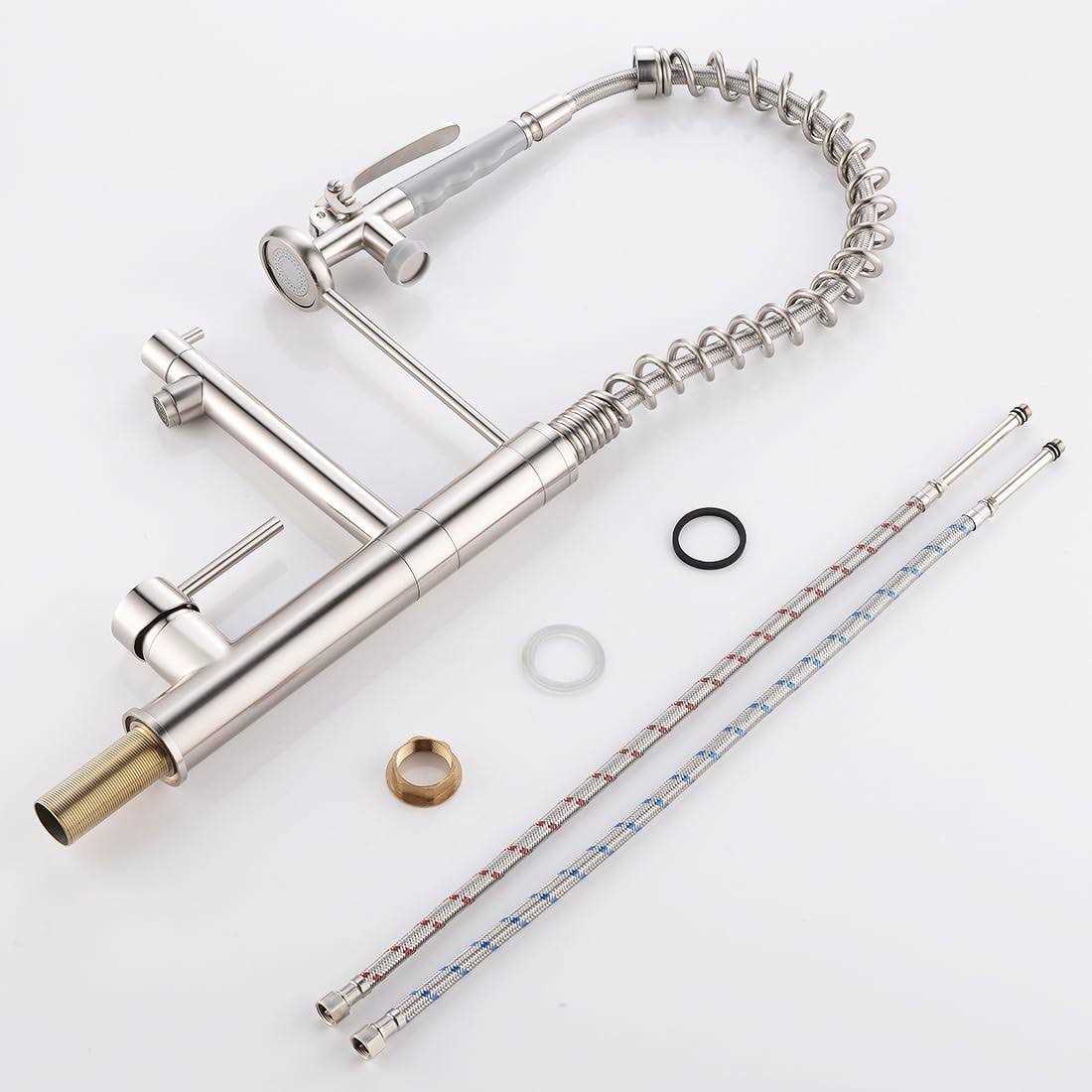 Commercial Kitchen Faucet with Pull Down Sprayer,AIMADI Modern Single Handle High Arch Pre-Rinse Spring Kitchen Sink Faucet,Brushed Nickel