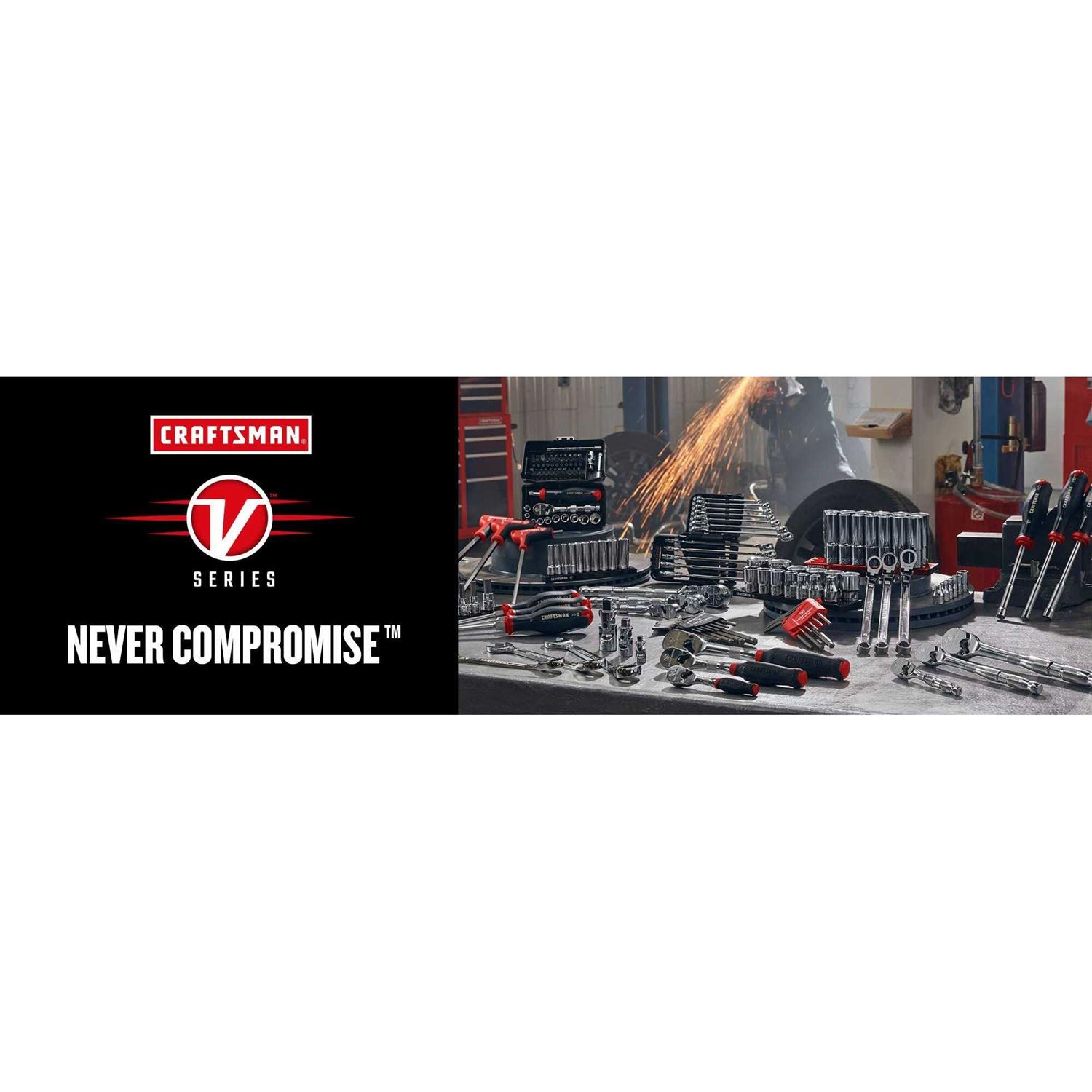 Socket & Socket Wrench Sets by Craftsman. Details:Take the quality of your equipment up a notch with the high-performance V-Series 1/2 in. Drive SAE Deep 6-Point Socket Set (13 pc.). This set was engineered to optimize the professionals productivity, with a magnetic socket rail for easy socket storage and organization plus 6-point socket geometry that maximizes torque onto the flats of fasteners with an off-corner design. Quick socket-to-fastener engagement is made possible by a chamfered and tapered tip design that helps you tackle demanding projects.