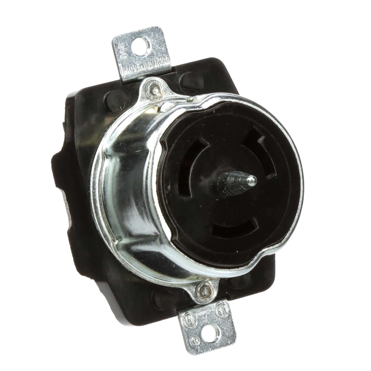 Keep your equipment running with this black locking receptacle from Hubbell Wiring Device-Kellems. This locking receptacle has a Non-NEMA configuration with a voltage of 250Vac and an amperage of 50. It has 2 poles and 3 wires. A flush mounting allows for utmost usability. It has 1 phase. This locking receptacle has a locking cover. It is made of impact modified pbt material. This has a grade of industrial. Standards include: Ul/csa.