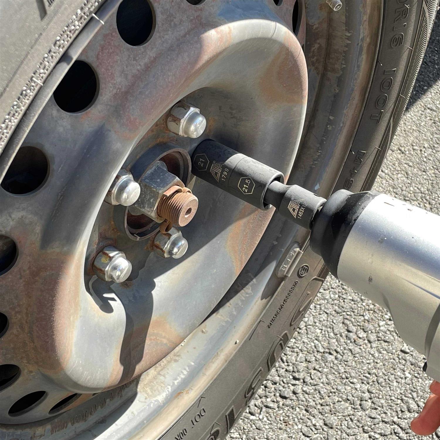 The CTA 1463 – Half Metric Flip Socket Kit is a comprehensive set of our most popular sized flip sockets for lug nut removal. The set is designed specifically for chrome-cap lug nuts, which when damaged or swollen, require half metric size to remove. Use CTA 7312 or similar 1/2 in. Drive extension to connect socket to an impact wrench.