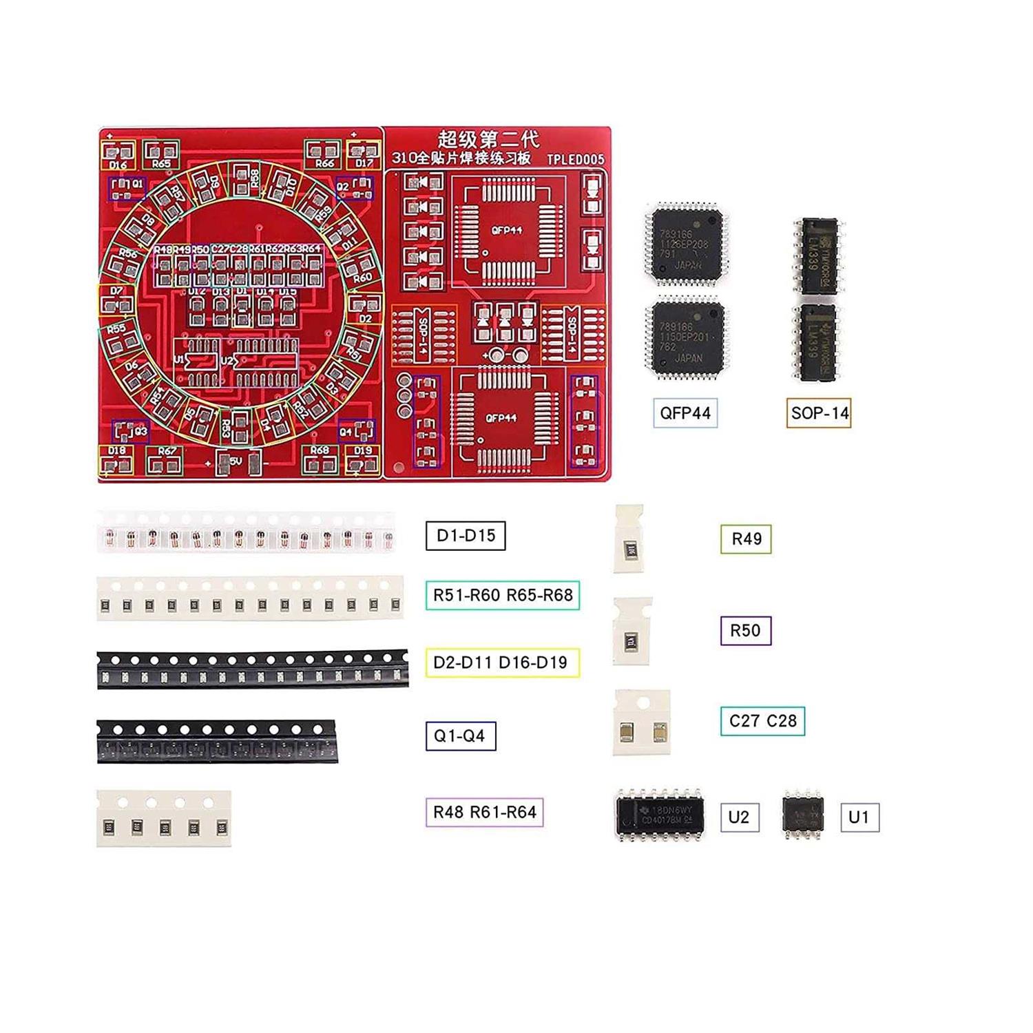 3 SETS of SUPER VALUE.From easy to difficult SMD components soldering practice kit, high challenge PCB SMD welding skills competition. Professional skills, complete this kit, need a certain professional knowledge base, practical training experience. High quality material, high-quality double-sided spray tin FR-4 circuit board, easy to solder, not easy to oxidize, contribute to success. Technical support, including component list, circuit diagram, principle description and finished product diagram. Super quantity components: there are many kinds of components, nearly 20 different kinds of electronic components. There are more than 1400 solder joints and more than 500 components. All kits are reliable in quality and printed clearly. 100% satisfied with the service. manufacturer: D DZRCOXI Item Trademark: D DZRCOXI Style: Soldering-All