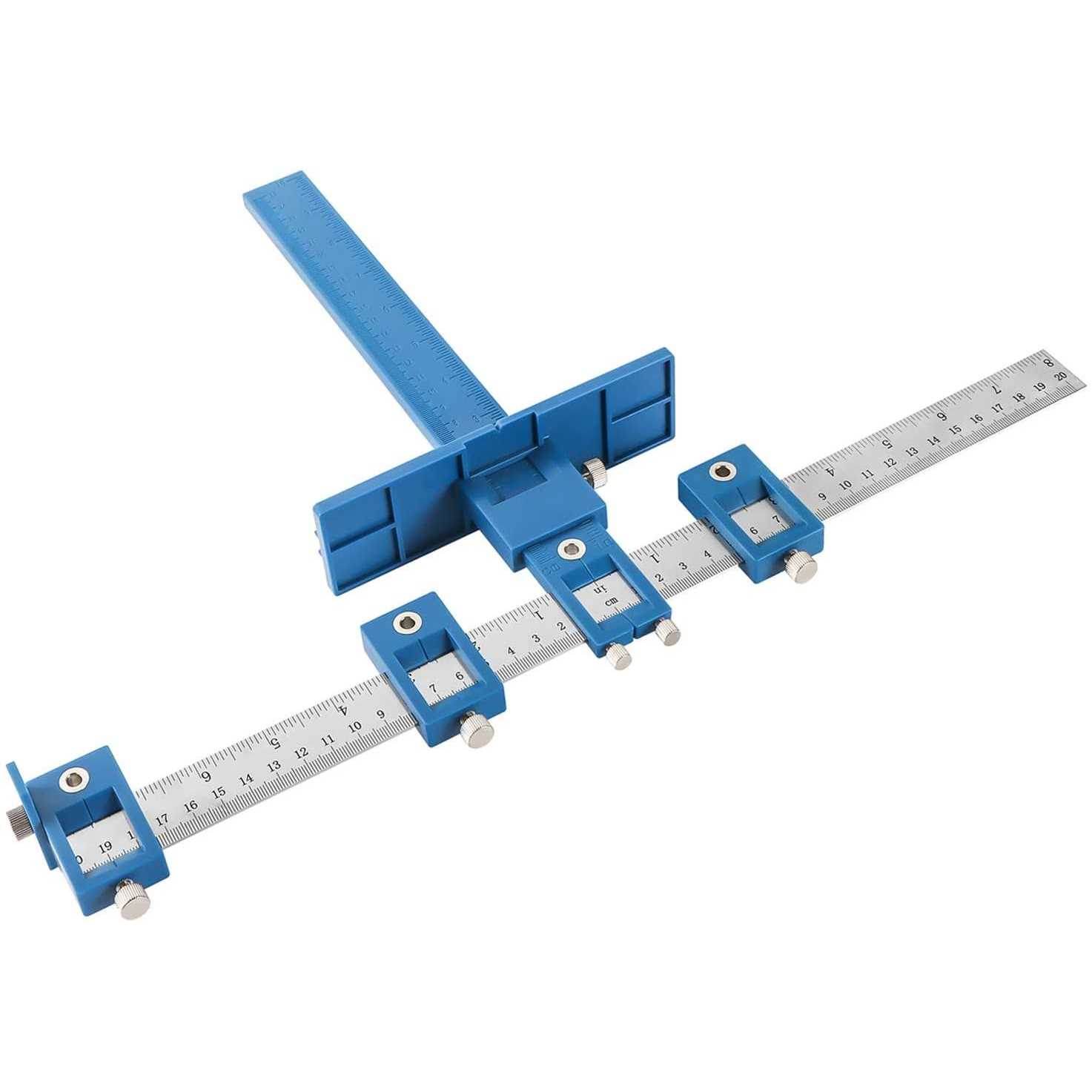 Cabinet Hardware Jig designed for the installation of a wide range of handles & knobs.Specification: Material: Stainless Steel + Plastic Hole: 5mm Scale: inch / mm Vertical scale: 0-10 inch / 0-25cm Horizontal scale: 8-0-8 inch(16 inch) / 20-0-20 cm(40cm) Edge to hole-center: 20cmFeatures: 1. The fastest and most accurate hardware woodworking tool. 2. Saves time wasted making wood templates. 3. With mm & inch scale, made of plastic and steel, easy to carry and durable. 4. Set it up once and use it repeatedly with no further measurements. This template jig lets you measure out perfect hole positions for cabinet handles, pulls, and knobs. 5. A multiple purpose template for precise installation of Pulls/Knobs on drawers and doors, the L-bracket and top screws keep it dialed in. 6. Crafted with stainless steel and plastic, our jig is great enough for even contractors to use it thousands of times