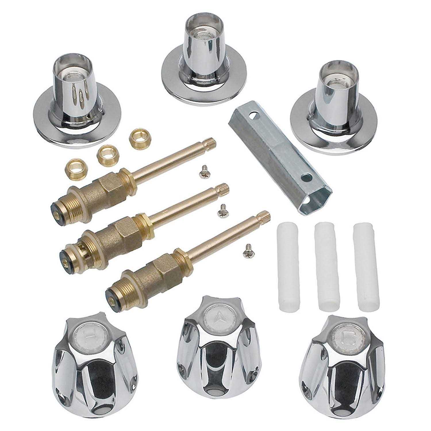 Restore your faucet to like-new condition with the Danco Rebuild Kit for Pfister Verve faucets. Repairing a leaky faucet is an inexpensive alternative to replacing the entire faucet fixture. Revitalizing the look of your tub and shower faucet is a DIY project that you can accomplish with the right Danco repair kit. This kit includes all the parts you need to rebuild your 3-handle tub/shower faucet. It features a chrome finish that will complement your existing fixtures.