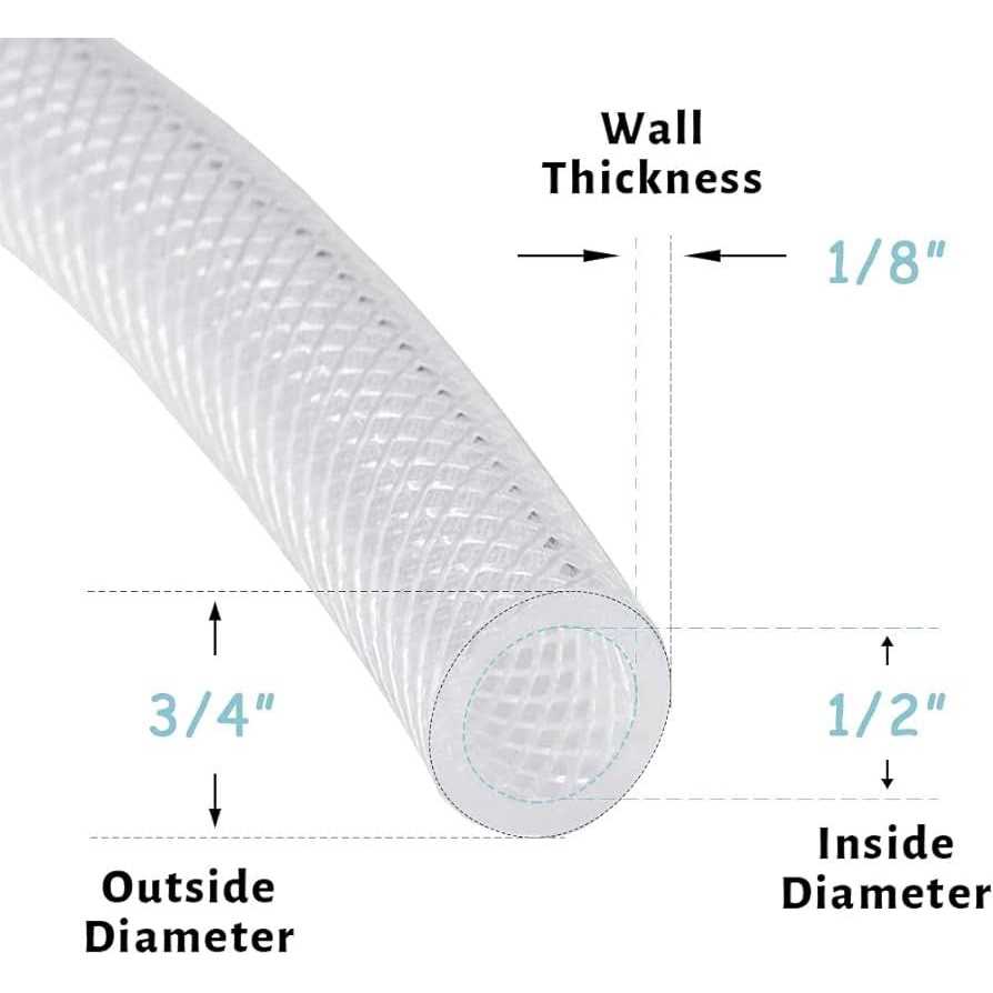 [Preferred PVC Material]. DAVCO braided tubing is made of high quality PVC, reinforced with high density polyester yarn braided, superior strength and sturdy.The service life of the hose is 3 times that of the ordinary hose. [Tubing Details]. DAVCO Clear flexible hose, 1/2 inch ID, 3/4 inch OD, 25 ft length, can withstand 200 psi working pressure. [Anti Kink & Not stiff]. DAVCO braided tubing is specially reinforced by thick wall, not easy to knot, lightweight and flexible, not stiff. has excellent weather resistance, kink proof, and can handle various chemicals, moisture and abrasion. The inner and outer surfaces are smooth, easy to flow and clean. [High standards]. DAVCO braided tubing uses professional technology and teams. The DAVCO brand has high requirements for products, and every product that is manufactured must go through 5 inspection and testing stages,ensuring that every product meets our high expectations. In addition, Our team in Los Angeles, CA is fully committed to providing 7×24 customer & technical support. [Great value for money]. Saving you money while giving you quality filtration. [Non-toxic]. DAVCO braided tubing uses non-toxic materials, BPA free, can be directly used in the aquarium water supply hose, safety and security. [Less Labor And Time]. DAVCO braided tubing is easy to unfold and use, can also be rolled up and stored well, ideal time and effort saving hose. [Multipurpose]. [Experienced and professional]. DAVCO is a professional brand that is committed to the water hose production industry. For the past 10 years, our products have been sold all over the world, and countless families have used or products as their solution. Specification: Inside diameter: 1/2 inch Outside diameter: 3/4 inch Wall thickness: 1/8 inch Length: 25 feet Max working pressure: 200 psi Firmness: 73 a Color: blue, clear- transparent Temperature range: 25°F-150°F Features: BPA free, non-toxic, not food grade. High strength – reinforced with polyester yarn braided Flexible and rigid – ideal for working in confined areas, not deformed. Kink proof – thick enough to prevent kinks. Transparent – you can clearly see the fluid inside. good seal – A bit tough to fit onto hose connectors, due to the rigidity, but it makes for a good seal when you get it on. Resist to weather, chemicals, humidity, and abrasion. Usually use with hose barbs and clamps Application: Drain line and waterline for fish tank, fountain, ponds, water garden, landscape. For fuel siphon pump, bilge pump, well pump, macerator pump. For pool sand filter, sand blaster, weed sprayer, air compressor, dehumidifiers, humidifier, plumbing, refrigeration, furnace condensation pump line. For the discharge line on a rolling oil drain tank For props or for protective insulation. For factory air lines, automation machinery and pneumatic lines. For transfer water and gas in industrial and construction. Attention: The flexible plastic tubing has an odor generated by high-temperature technology (like freshly manufactured plastic). Putting it outdoors for a few days before use can greatly reduce the odor. Just heat, install and bend to shape, then let it cool.