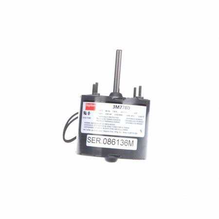 The Dayton 3M778 is a 1/20 HP continuous duty, open air-over motor that replaces 1/50 HP PSC and shaded-pole motors with lower efficiency in HVAC/R applications. This Dayton HVAC motor can also be used in direct drive fan/blower environments. The nameplate RPMs are 1550 and voltage is 115. The frame is a 3.3 with a service factor of 1.0, full load amps of 1.8, 60 Hz, with CWSE rotation. The insulation is rated at Class B with a maximum ambient temperature of 40 degrees C. This single-speed unit with mounting stud utilizes sleeve bearings, automatic thermal protection and has a body diameter of 3.3″, shaft diameter of 5/16″, shaft length of 2″, length less shaft of 3-5/16″. The stud location is SE, the stud/base mounting pattern is 2 x 2″, and this unit is a single phase with an RPM range of 1501-1600.
