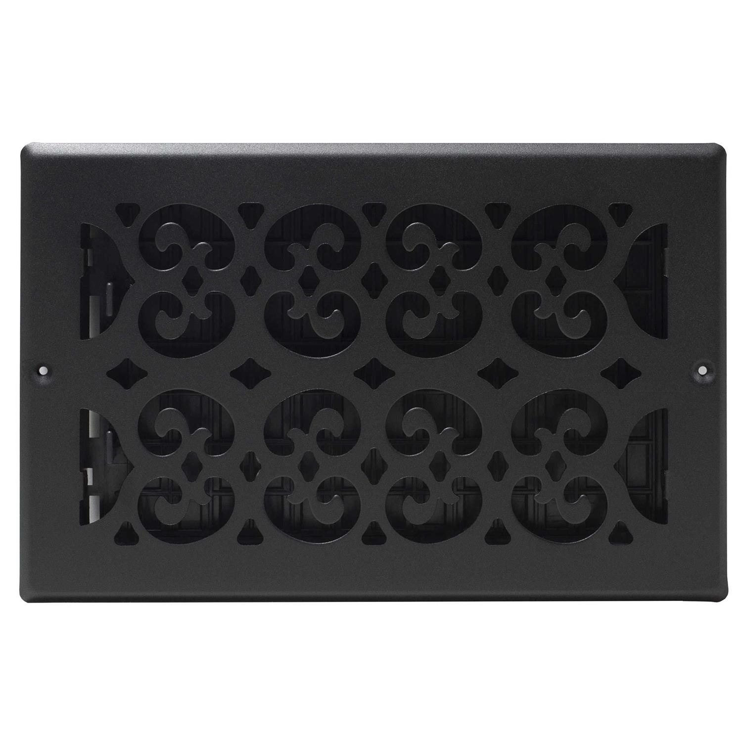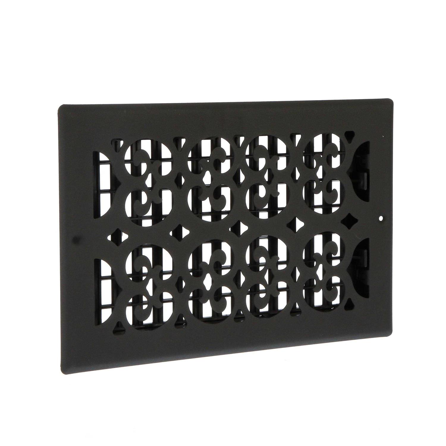 Modeled after the wavy patterns in plant life, the Decor Grate register features a class scroll design. This product is used much like a vent to control the air that comes from heating and cooling systems. Unlike vents that have vertical and horizontal slats, the air circulates in a spiral motion as it comes out of the register. Use it to provide a decorative pathway throughout the home. Additionally, the 6 inch x 10 inch floor wall register can be used any place a register is needed, including the ceiling. Installation is easy. After measuring the dimensions to make sure you have the correct size, simply remove the existing cover and replace it with this one. Furthermore, the black scroll register will give your home a fresh look.