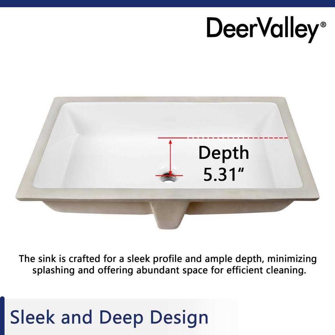 DeerValley The DeerValley undermount bathroom sink is the epitome of durability and style. Made from premium-quality ceramic, this sink is designed to withstand the test of time. Its undermount installation method simplifies the setup process, seamlessly merging with your countertop to create a sleek and uncluttered appearance. The smooth surface not only adds a touch of visual appeal but also makes cleaning effortless, saving you valuable time and effort in maintaining its pristine condition. With the DeerValley undermount bathroom sink, you can experience the perfect combination of functionality and elegance. Upgrade your bathroom with this exceptional sink that brings both durability and style to your space.