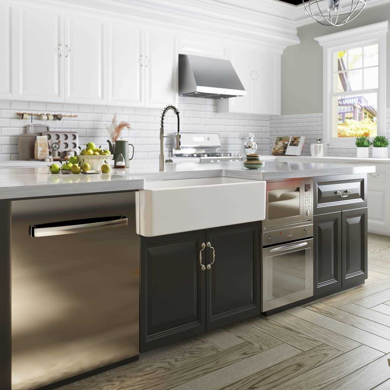 Beautifully designed farmhouse sink instantly elevates any kitchen. Its smooth, high gloss apron front serves as an elegant centerpiece for the entire kitchen. Durable fireclay construction with high temperature heat-treated vitreous glazed surface to resist stains and scratches. Ceramic is hardened with a lasting, high gloss glaze that prevents scratches and stains. The unique drop-in design makes this sink suitable for use on any standard countertop material. Its smooth, high gloss apron front serves as an elegant centerpiece for the entire kitchen. Durable fireclay construction with high temperature heat-treated vitreous glazed surface to resist stains and scratches. Ceramic is hardened with a lasting, high gloss glaze that prevents scratches and stains. The unique drop-in design makes this sink suitable for use on any standard countertop material.