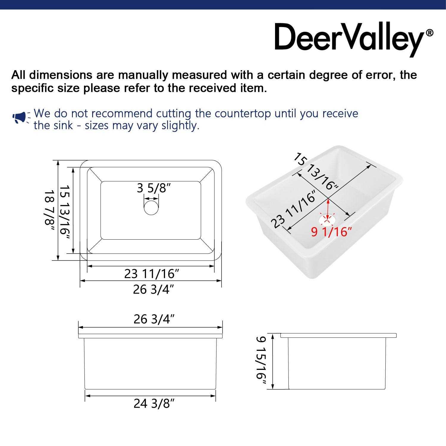 DeerValley DV-1K509 Fireclay 27 inch L x 19 inch W Undermount Kitchen Sink