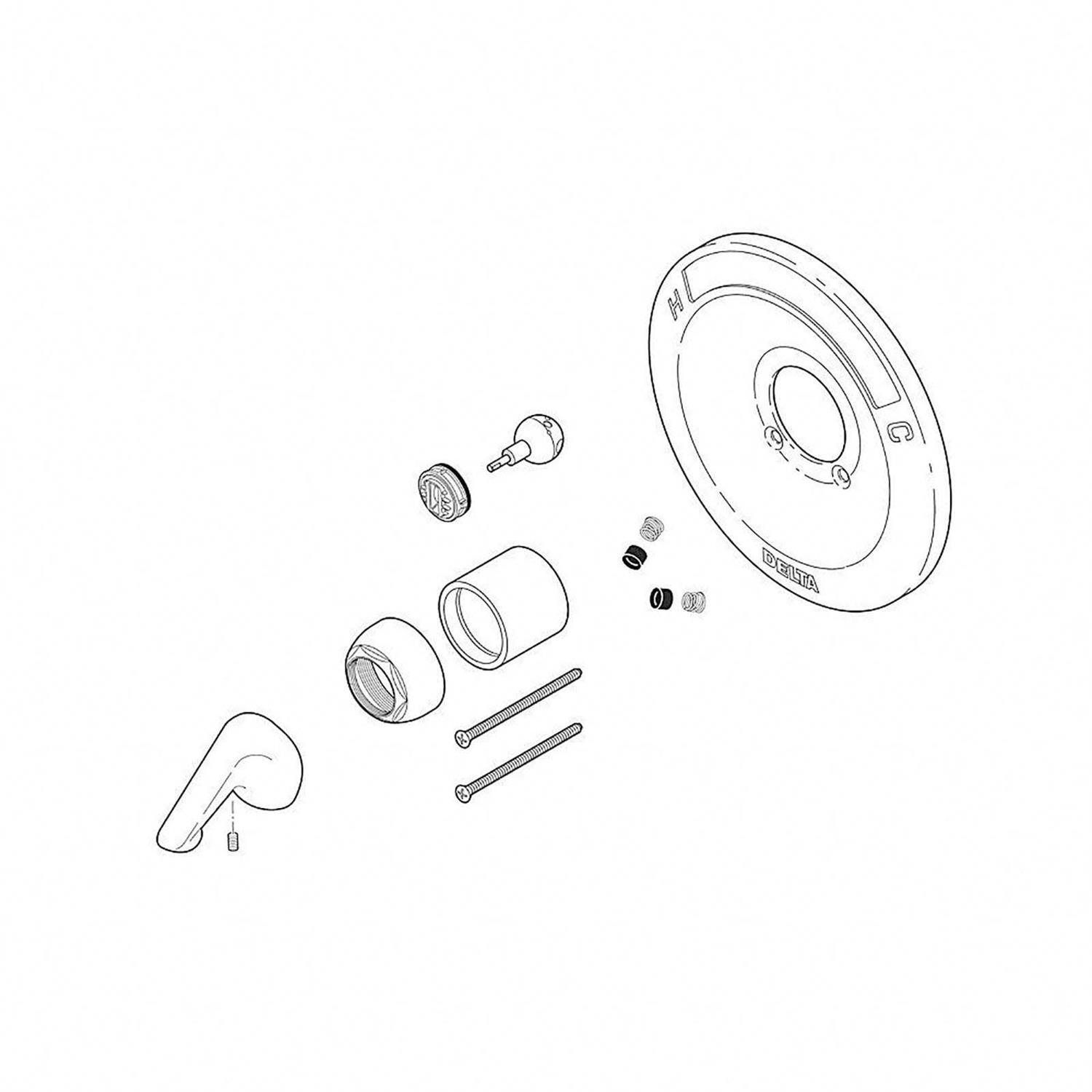 - Includes escutcheon, screws, seats and springs, conversion ball and cam assembly, sleeve, cap and handle