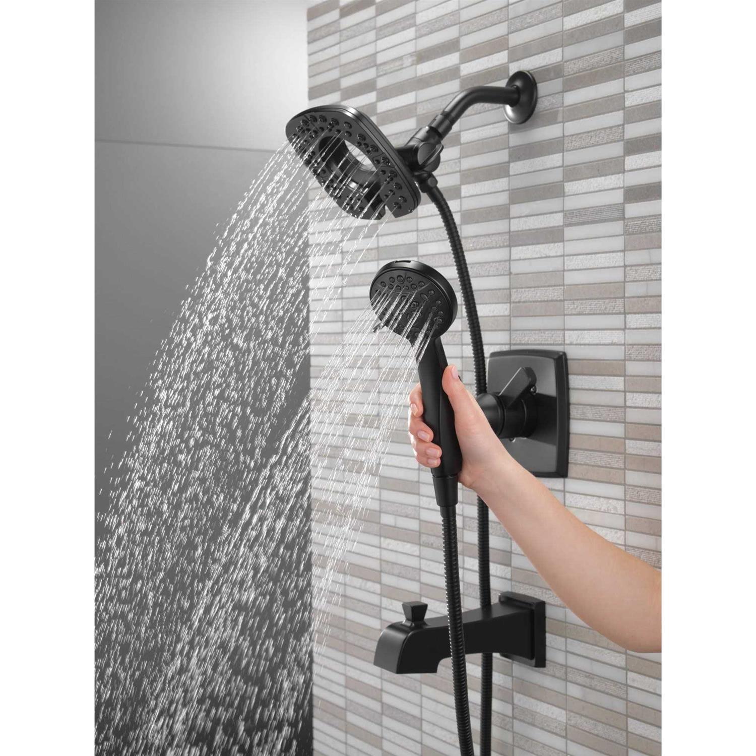Delta Faucets T17464 BL I Ashlyn Monitor 17 Series Shower Trim With In2Ition Two In One Shower in Matte Black The sleek, angular lines and soft edges of the Ashlyn bath collection create a modern appeal at an attractive price. The In2ition shower features a detachable hand shower, which can run separately from or simultaneously with the shower head, giving you the warmth and flexibility of two streams of water at once. Enjoy the comfort of water streaming from the shower head position, while the hand shower offers the flexibility to accomplish other tasks, such as bathing your children; washing your pet; and keeping your shower clean. When you’re finished, simply slip the hand shower back into place on the shower head. The In2ition 2 in 1 Shower is a quick and easy way to upgrade your shower. Simply remove your current showerhead and replace with the In2ition shower. There’s no need to go behind the wall to enhance your everyday shower.