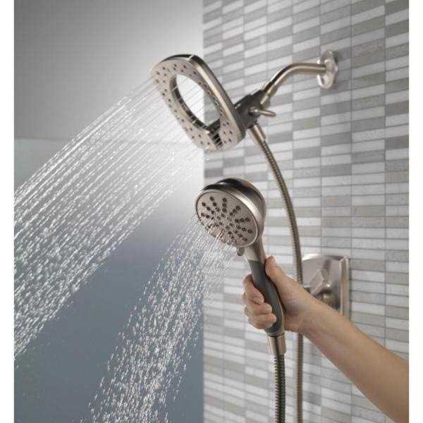 - Diverter lever sets In2ition 2-in-1 shower to 1 of 3 options: showerhead and handshower, showerhead only and handshower only