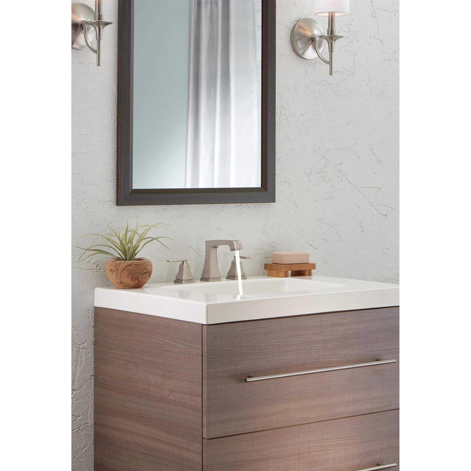 The sleek, angular lines and soft edges of the bath collection create a modern appeal at an attractive price. Faucet exclusive diamond seal technology uses a valve with a tough diamond coating. Innoflex PEX waterways keep water inside the faucet out of contact with potential metal contaminants. This powerful combination brings you a faucet built to last up to five million uses. Installation is easier than ever with the EZ anchor mounting assembly. Secure the faucet from above with no need to go below the deck. Mounts the faucet tightly to the deck, helping prevent the faucet from loosening over time. Easily installs on decks up to 2-1/2 in. Thick, like granite or quartz. Whether you’re a first-timer just learning how to install a faucet or a seasoned installation professional who’s done it a dozen times, save your back and your knees with the EZ anchor mounting assembly. Faucet is committed to supporting water conservation around the globe and has been recognized as a WaterSense manufacturer partner of the year in 2011, 2013, and 2014.