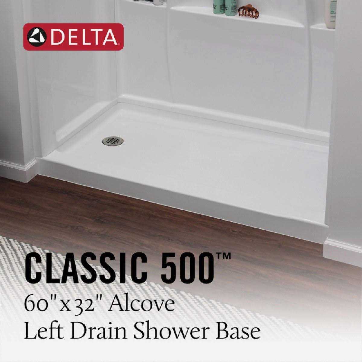Delta Classic 500 alcove shower systems are designed for long-lasting performance with innovative features that make life simpler from installation on day 1 to every day after. Select shower bases and coordinating shower walls in a variety of designs and configurations to customize your space. Add a Delta shower available in an array of styles and finishes for a curated look from top to bottom. Color: High Gloss White.