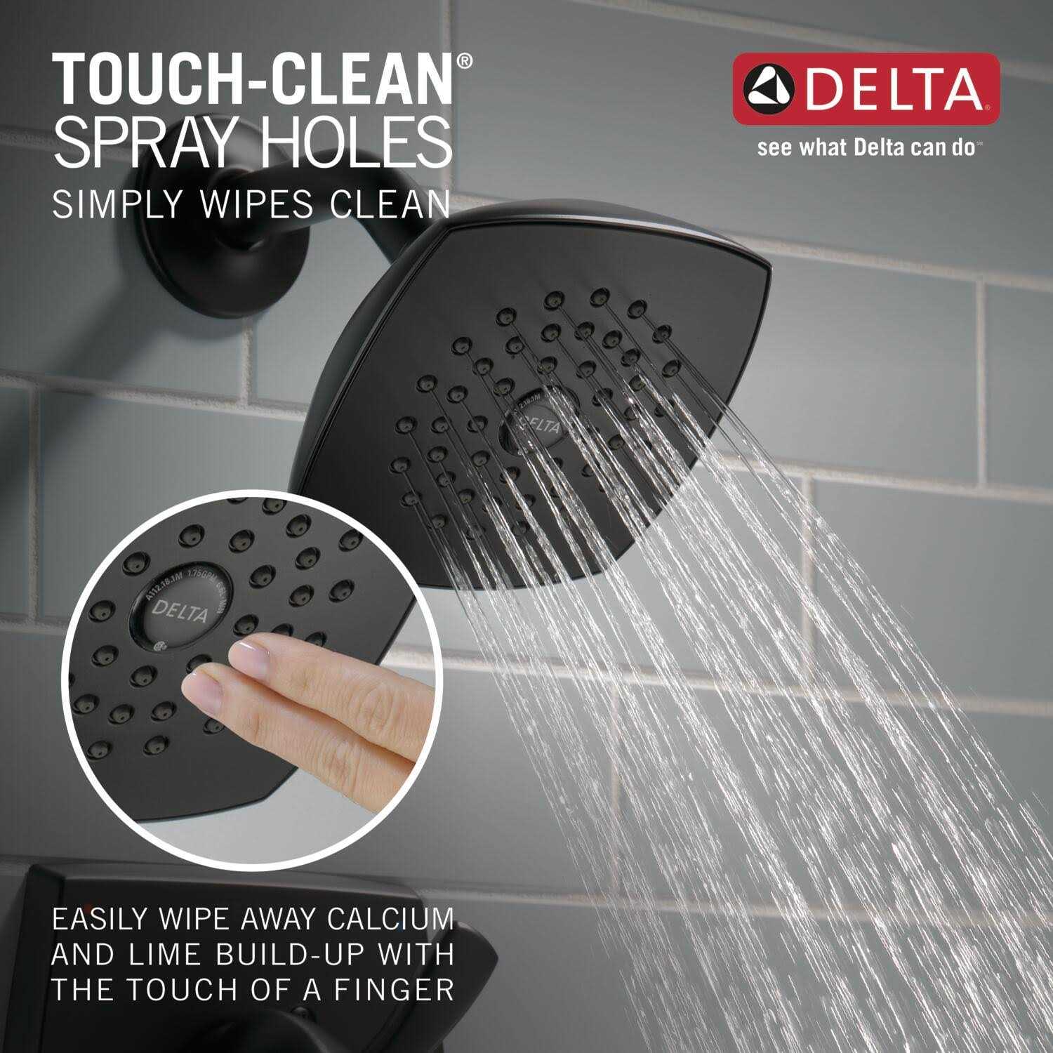 Monitor pressure balance valve keeps water temperature within a safe 3 degrees F (1.6 C), helping to protect you from sudden changes in hot or cold water pressure. Spray settings include: Full Body spray. Full body spray provides a steady, full-coverage spray perfect for every shower need, from rinsing shampoo from hair to relaxing tired muscles. Soft, rubber Touch-Clean spray holes allow you to easily wipe away calcium and lime build-up from the spray face of your shower head and hand shower with the touch of a finger. Complete unit includes trim and MultiChoice Universal Valve with rough-in. ADA Compliant. WaterSense labeled shower heads use at least 20% less water than the industry standard without compromising performance.