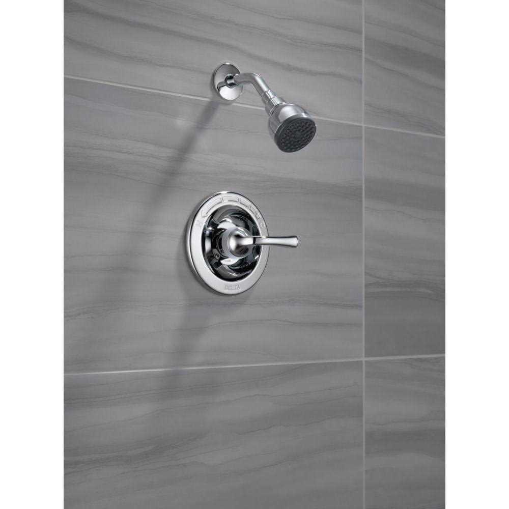 The Foundations Single-Handle 1-Spray Shower Faucet in Chrome from Delta is built for today’s busy home with bustling bathroom activity. Beneath its clean understated look this faucet offers a functional and hardworking design built to endure tough use and still perform beautifully day after day. Its single-handle lever control makes it easy to adjust temperature and volume. The environmentally friendly design is also WaterSense certified to reduce water waste making it an efficient and responsible choice for your home.